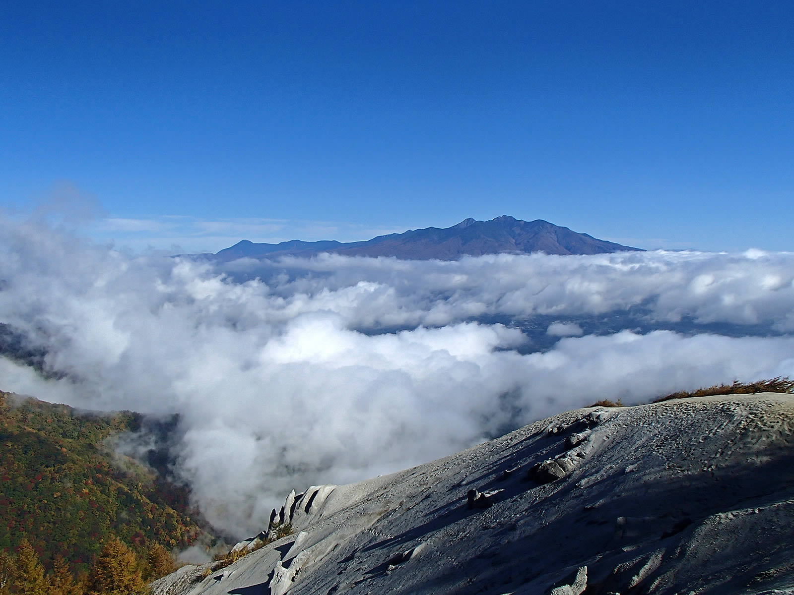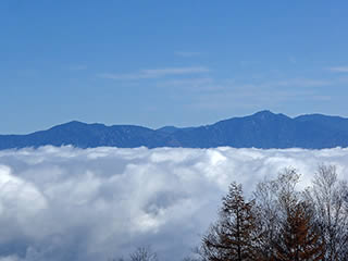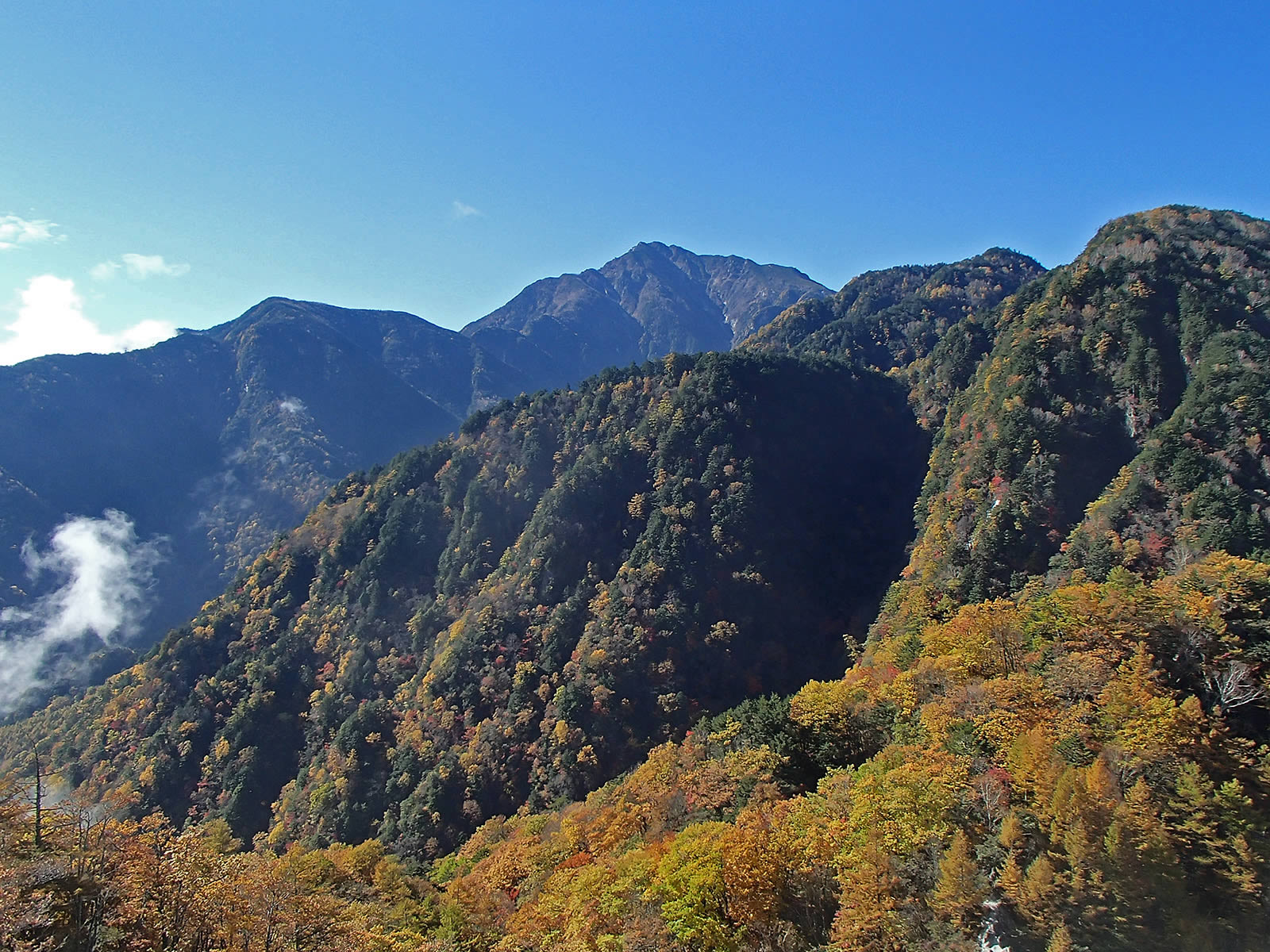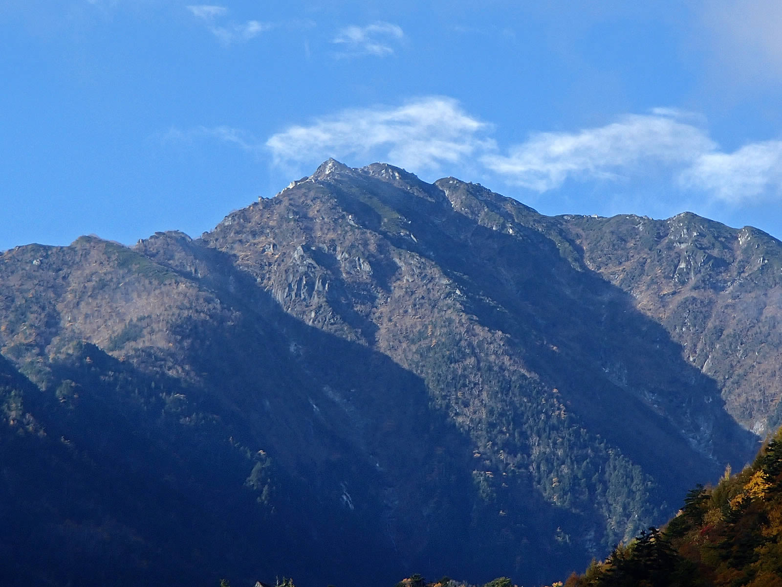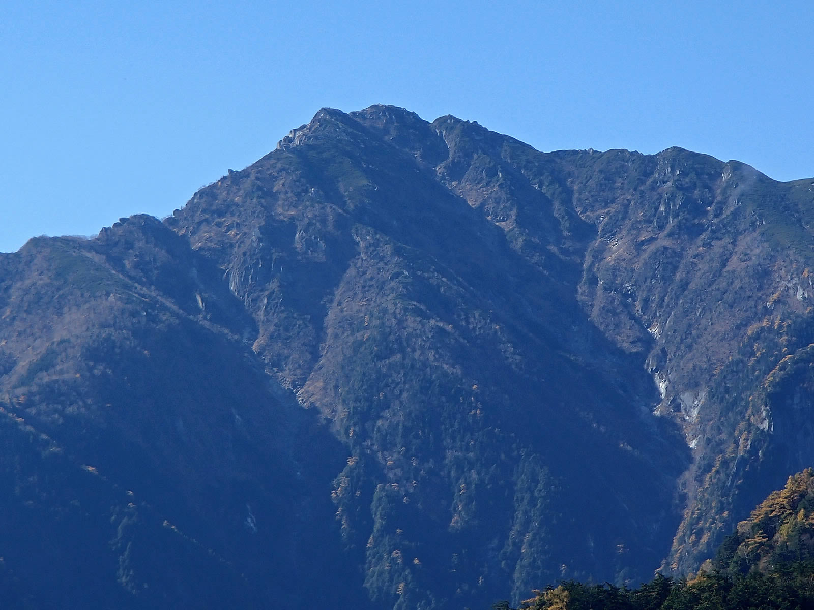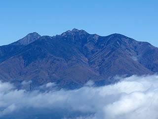 八ヶ岳をズーム。権現岳と赤岳が重なっています。八ヶ岳も中腹より下まで紅葉が降りてきています。
