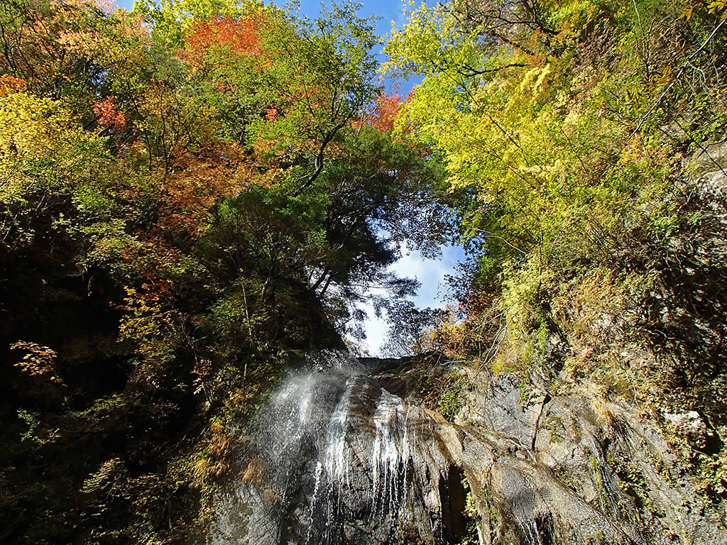 矢立石のあたりはまだ緑が主体でところどころ色付き始めているという感じですが、進むにつれて周囲の紅葉がだんだんと増えていきます。