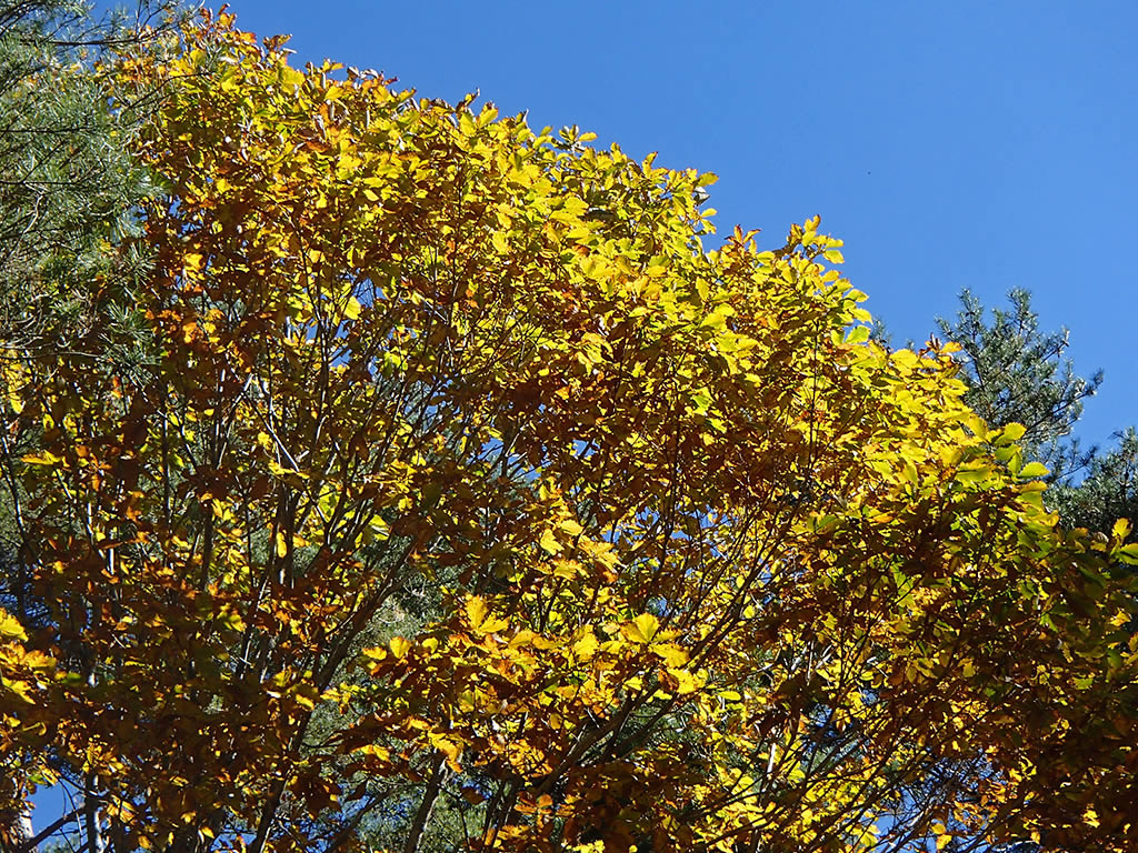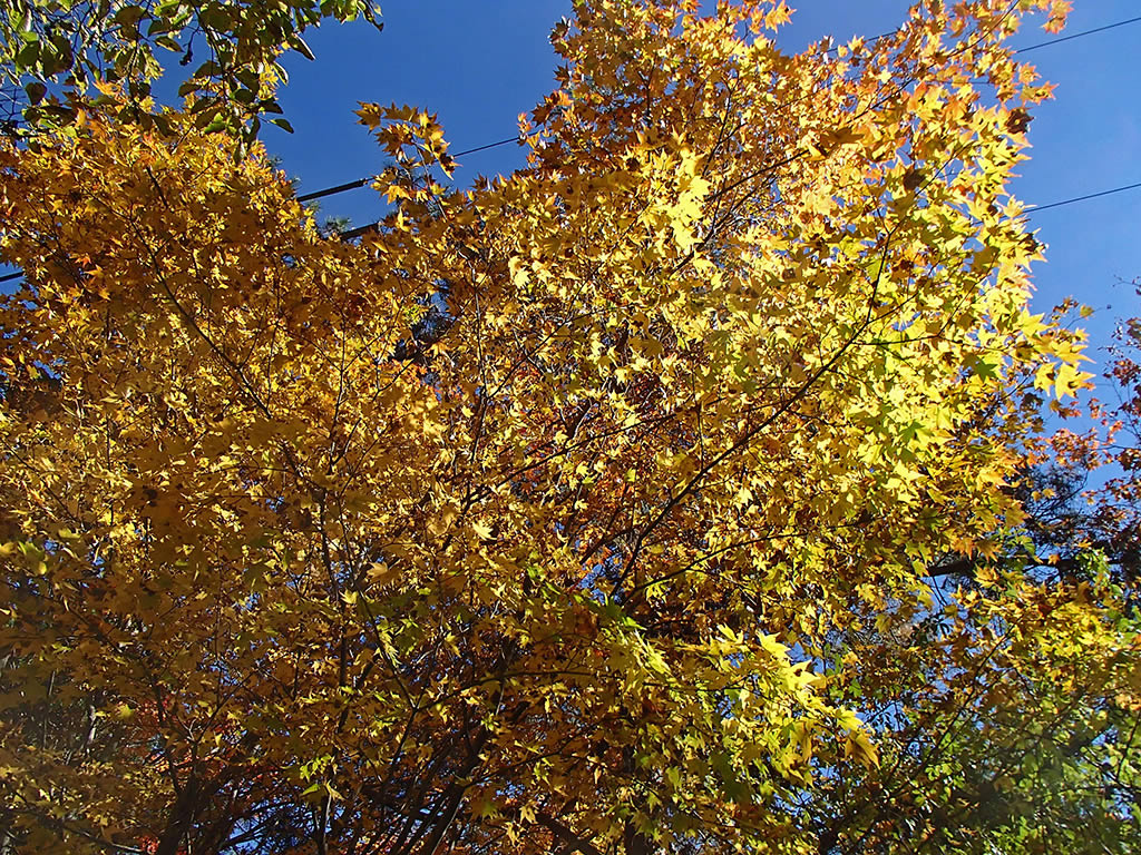 林道に覆い被さっているもみじは、黄色のままほとんど散っていました。いつもだときれいな紅葉が見れたのに残念です。