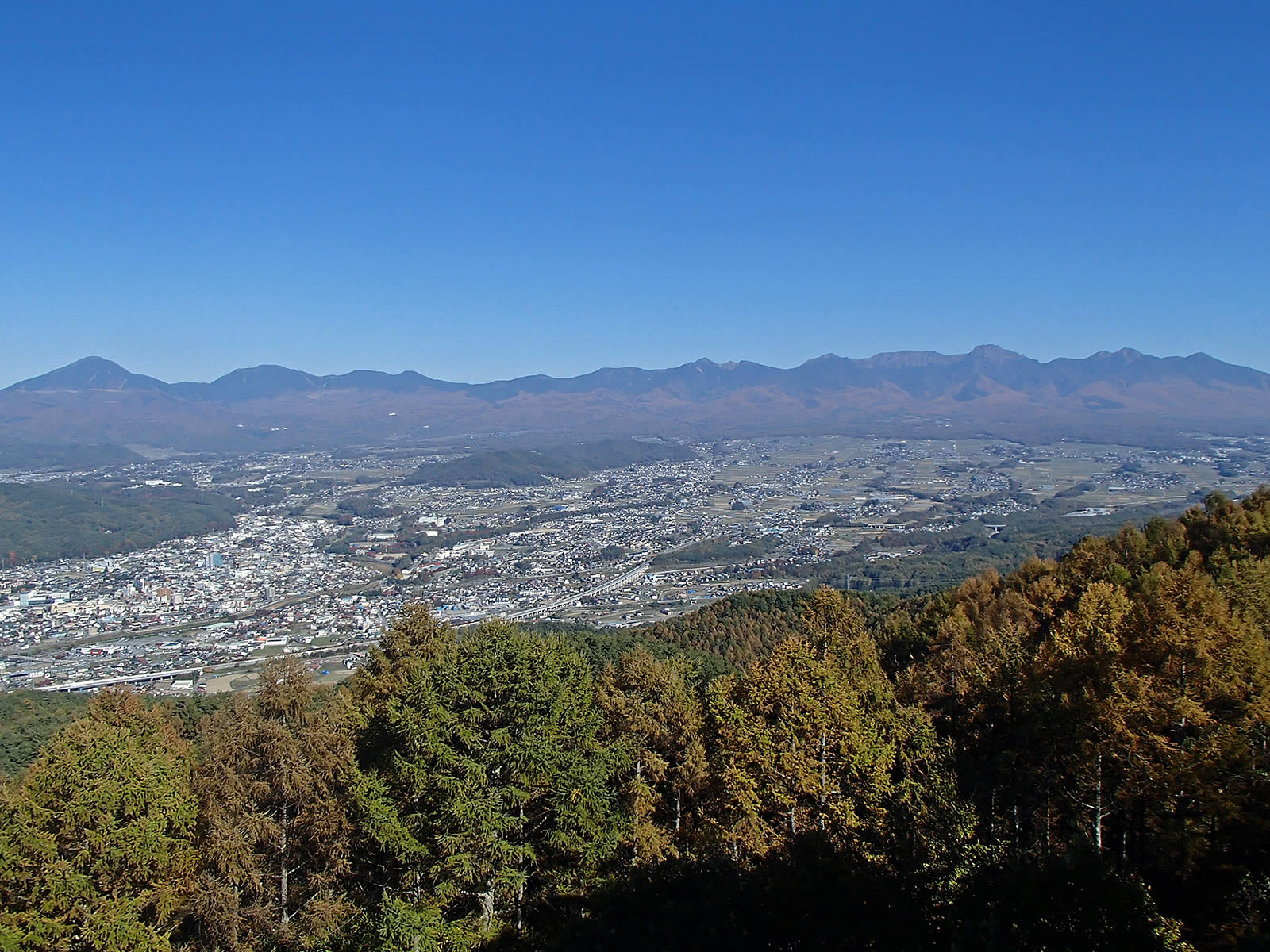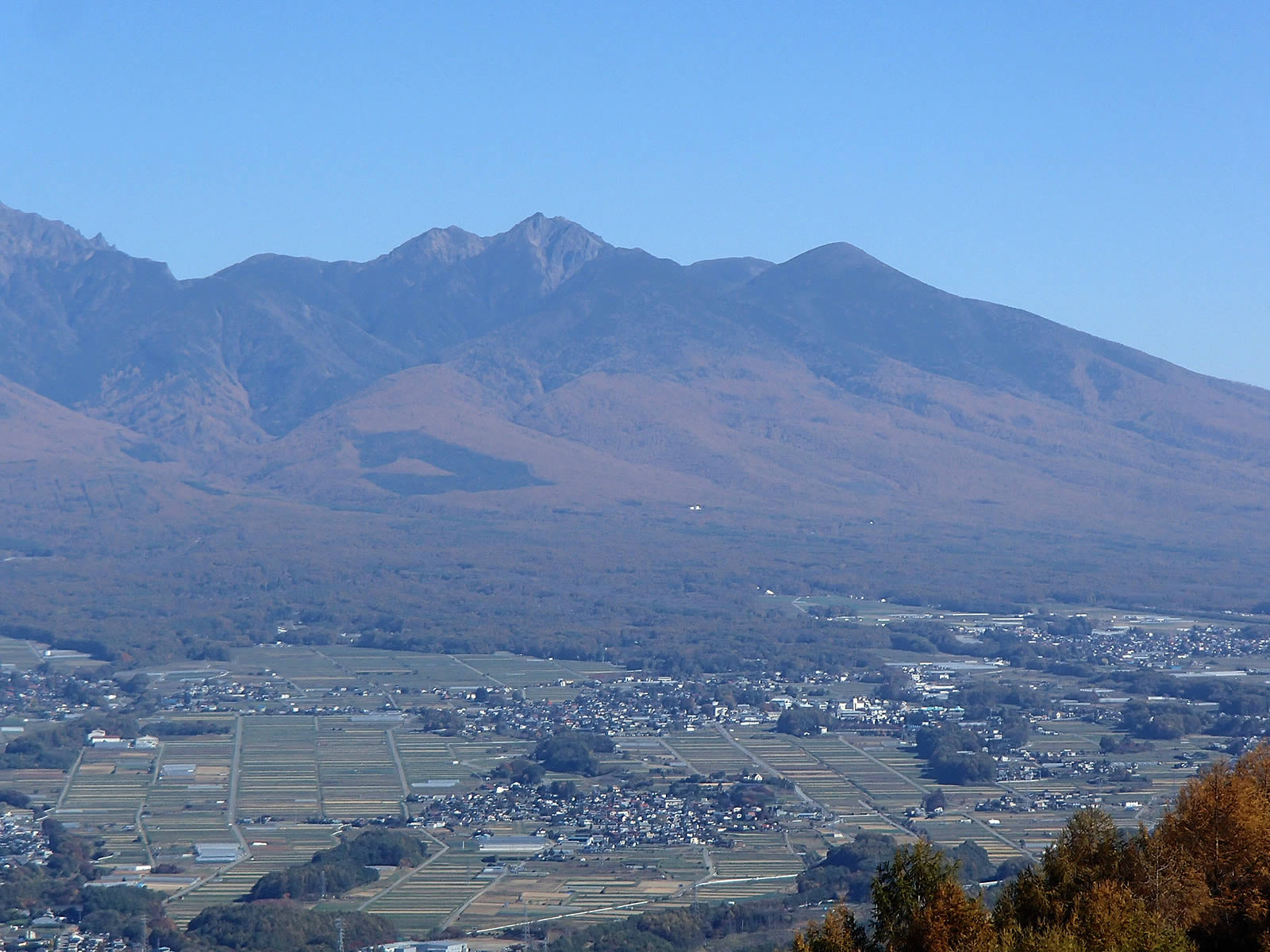 無料展望台からの眺めです。まず八ヶ岳の展望。素晴らしいです。特に午後は順光になって一段ときれいに見えます。
