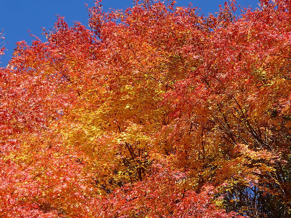 国道沿い以外ではここのもみじが一番大きくて見事です。ちょうどピークという感じです。