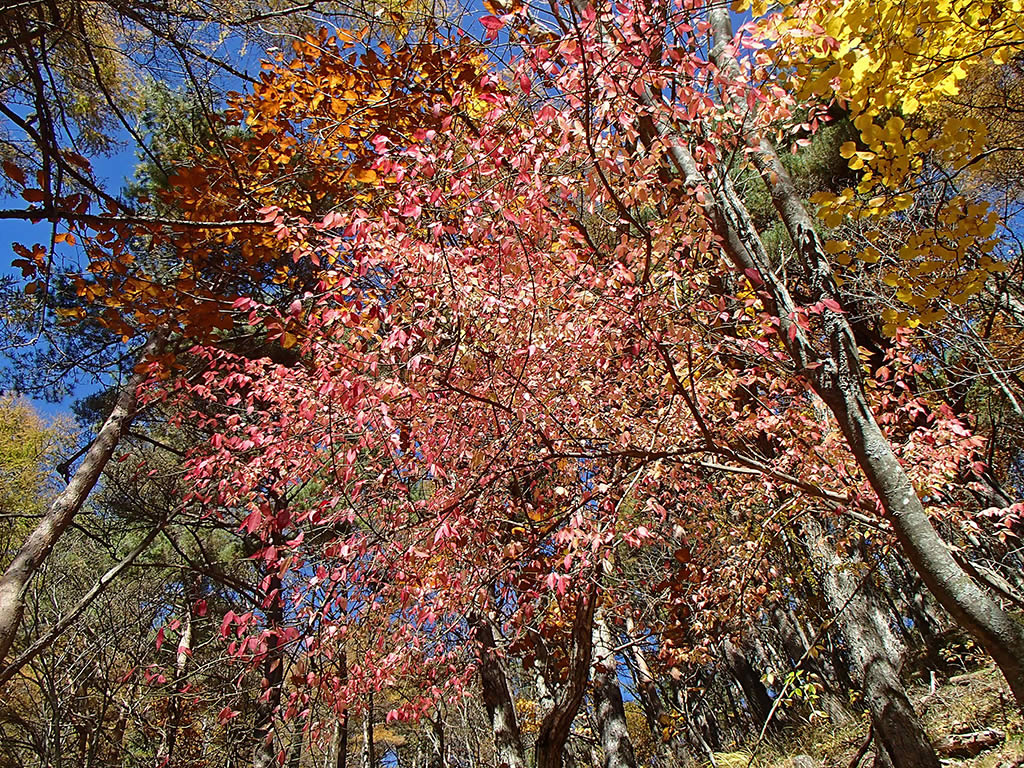 登って行くとまもなく斜面の紅葉は見頃となります。
