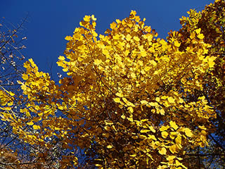 カラマツの黄葉もこの辺りでちょうどピークです。黄金色に輝いています。