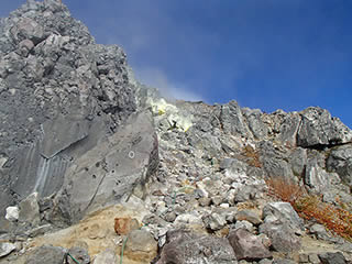 稜線の少し手前から硫黄の強いにおいがしてきます。風向きのせいでしょうか。