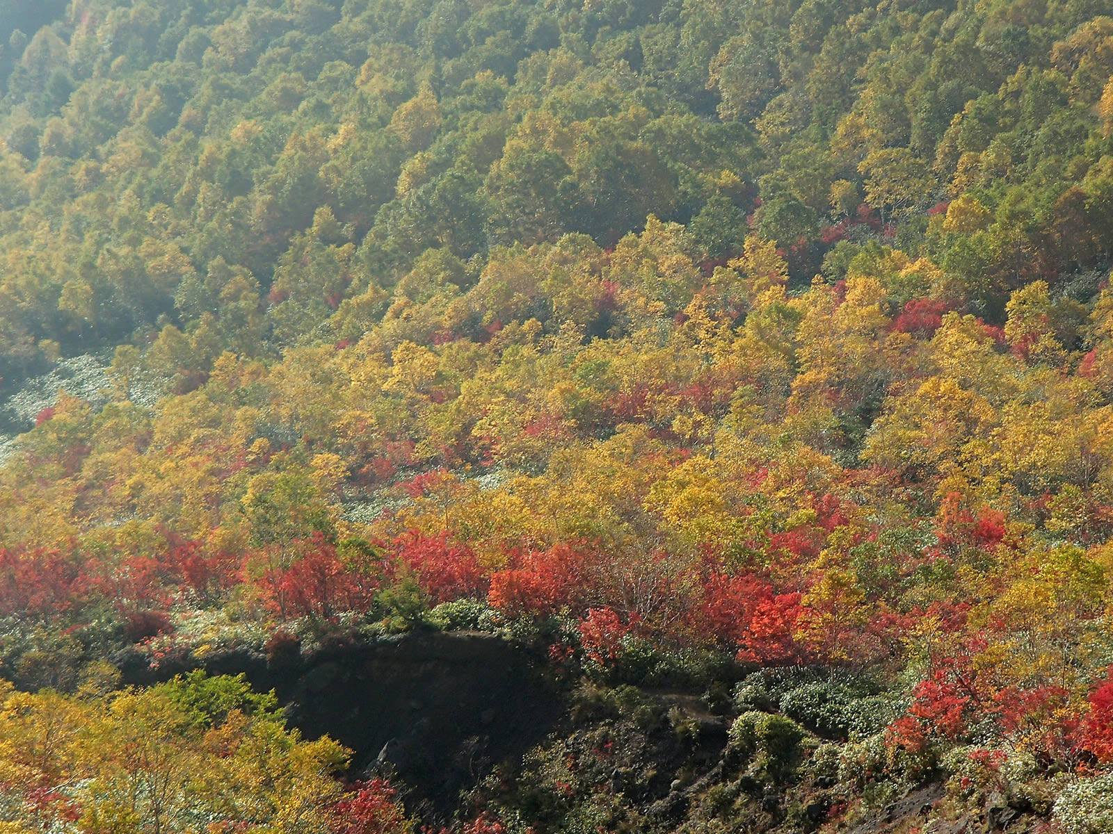 斜面の紅葉をズーム。