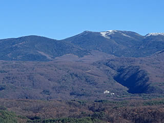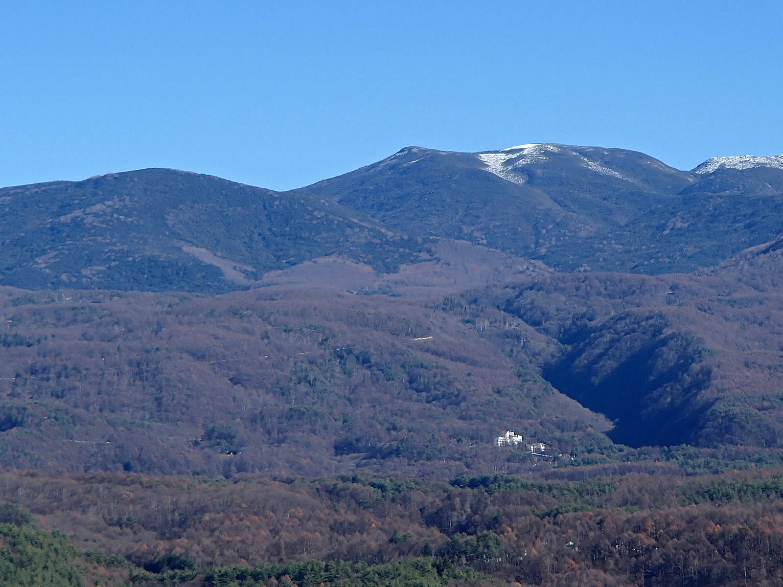 白い山をズーム。あの形は間違いなく御嶽山ですね。今日は噴煙があまり確認出来ません。