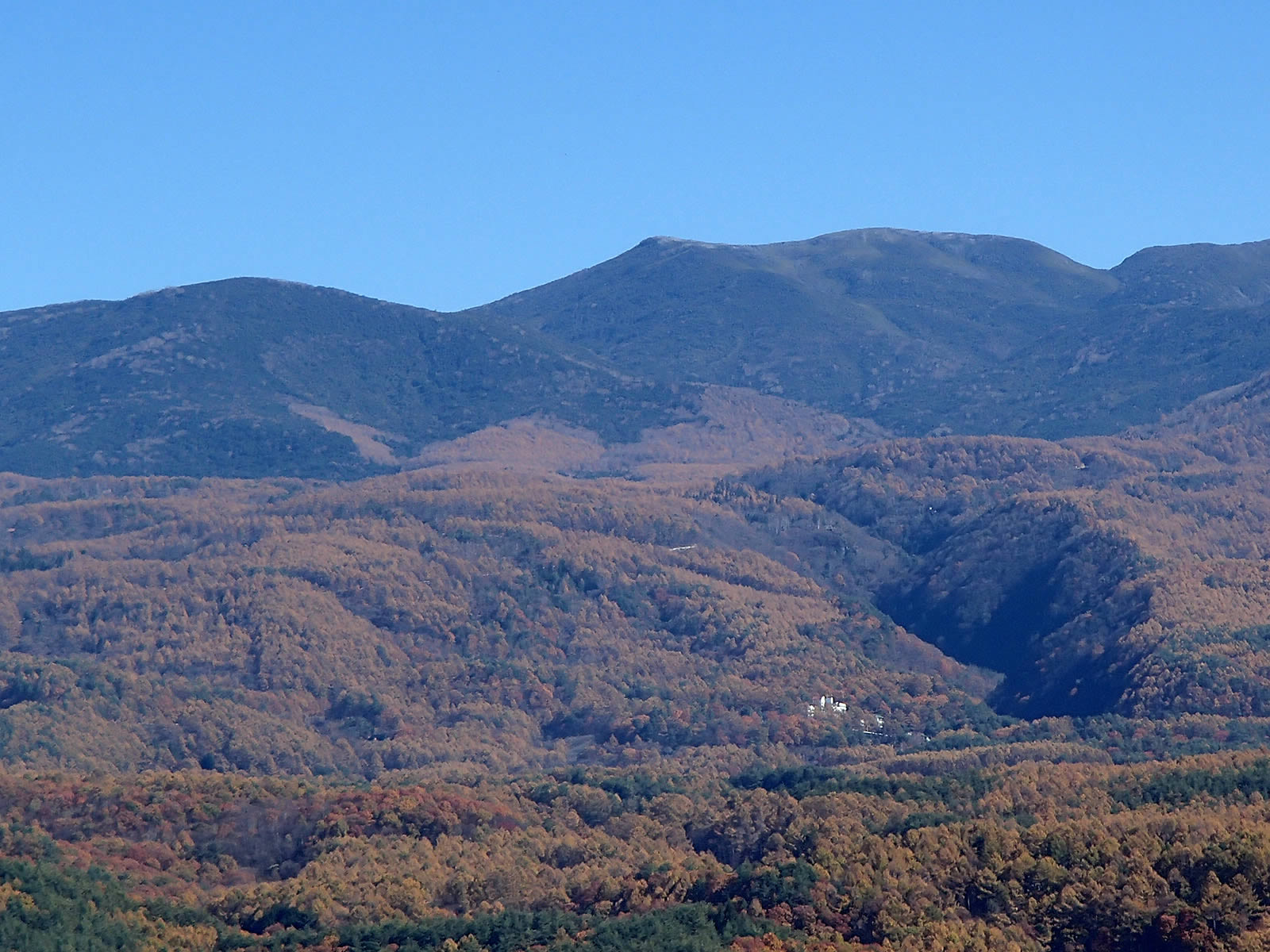 蓼科山をズーム。こちらはあまり降雪が無かったのか白くはなっていないようです。