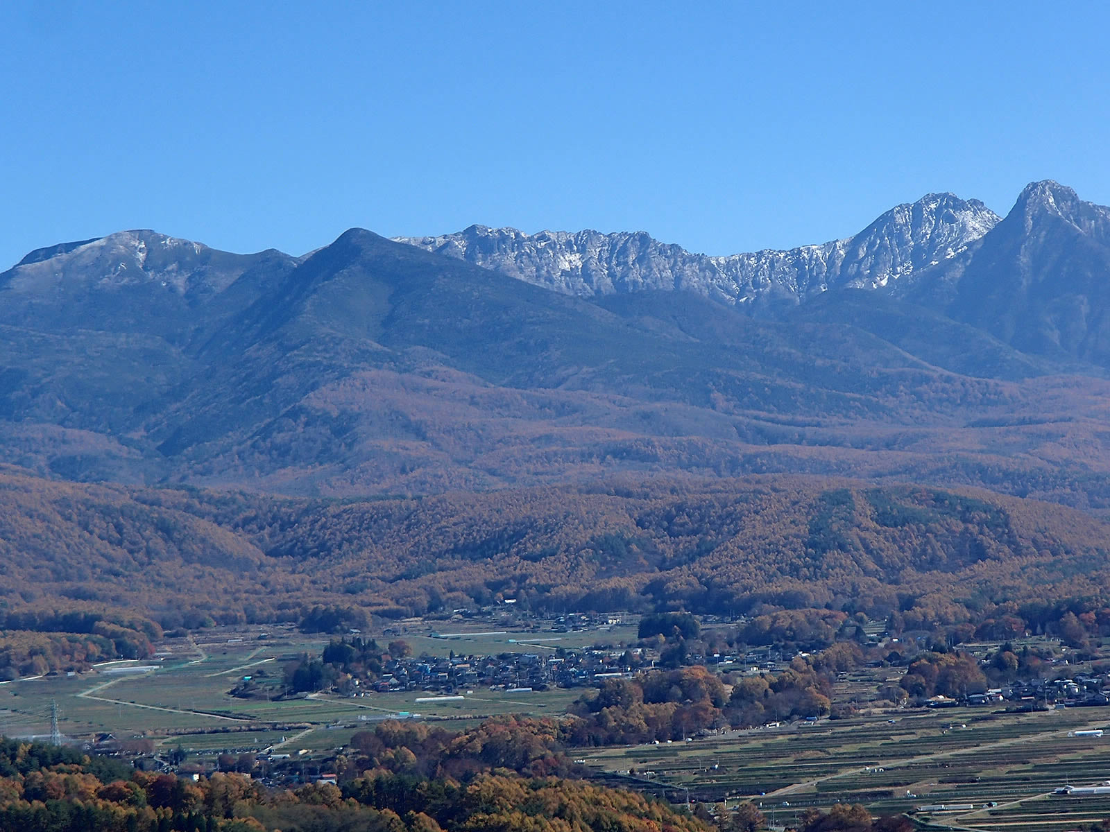 次に少しだけ見える南アルプス側。ちなみに富士山はここからは八ヶ岳の裾野が邪魔して見えません。