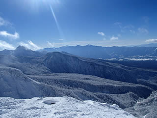 ではこちらの山頂からの展望もぐるりとご紹介。まずは金峰山方面から。