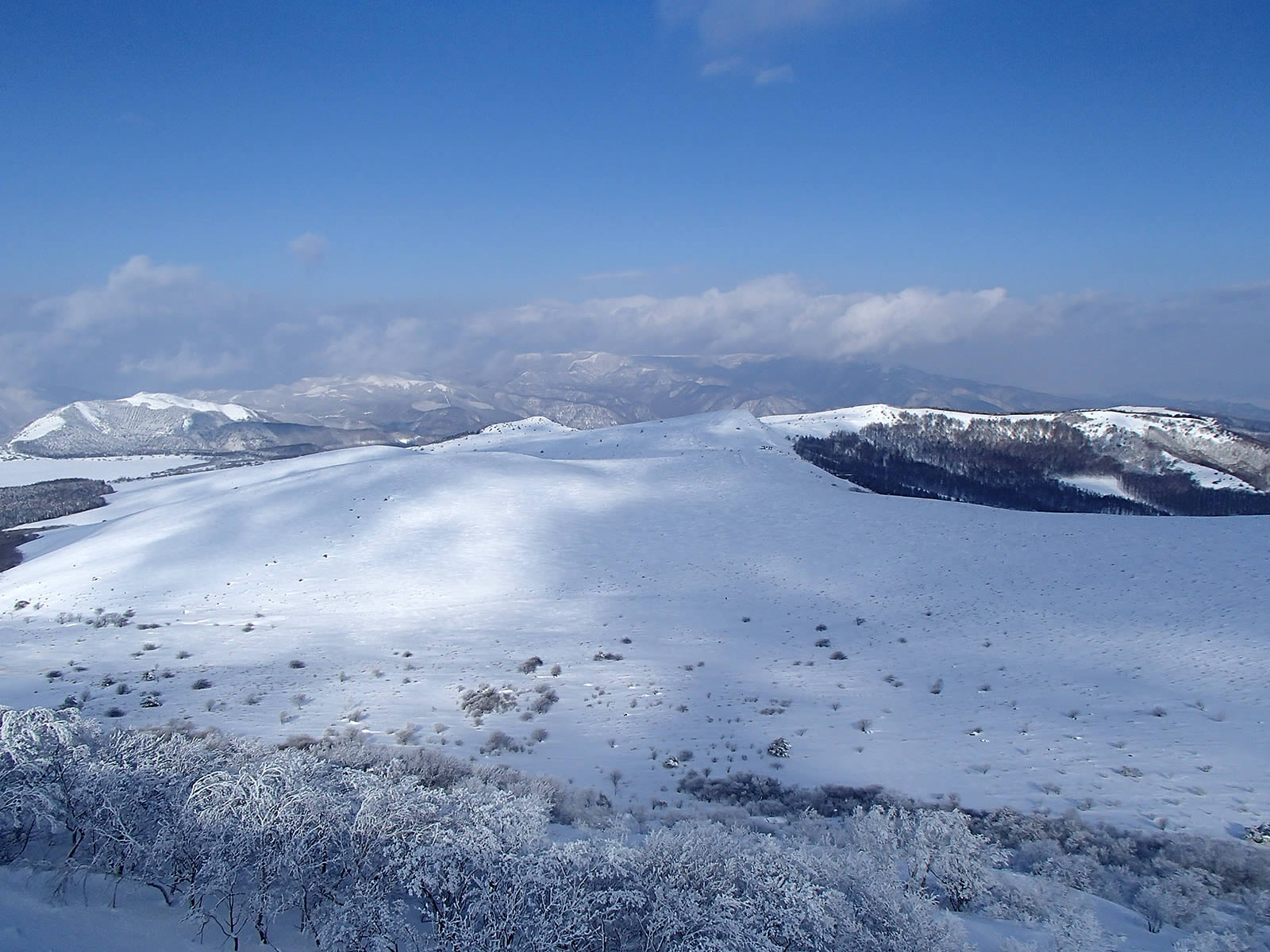 二日前に湿った雪が降り、霧ヶ峰周辺でも30cmほどは新雪が積もったらしいと聞き、さらには前日は1日ガスで今日は天気予報は晴れ。それなら二日前の新雪がさらさらのまま保存されているかもしれないと期待して、今年最後のバックカントリーに車山北面に出かけて来ました。