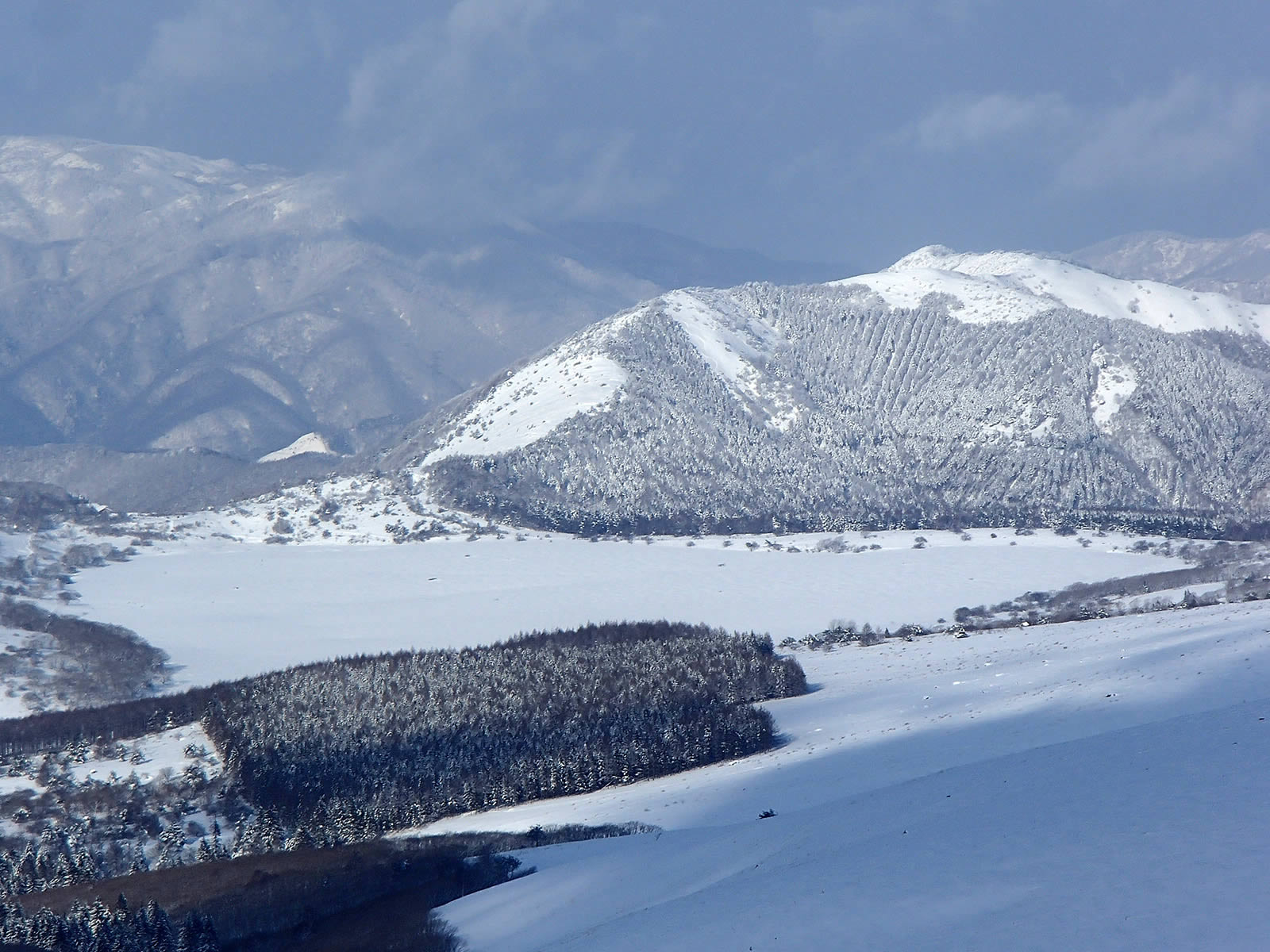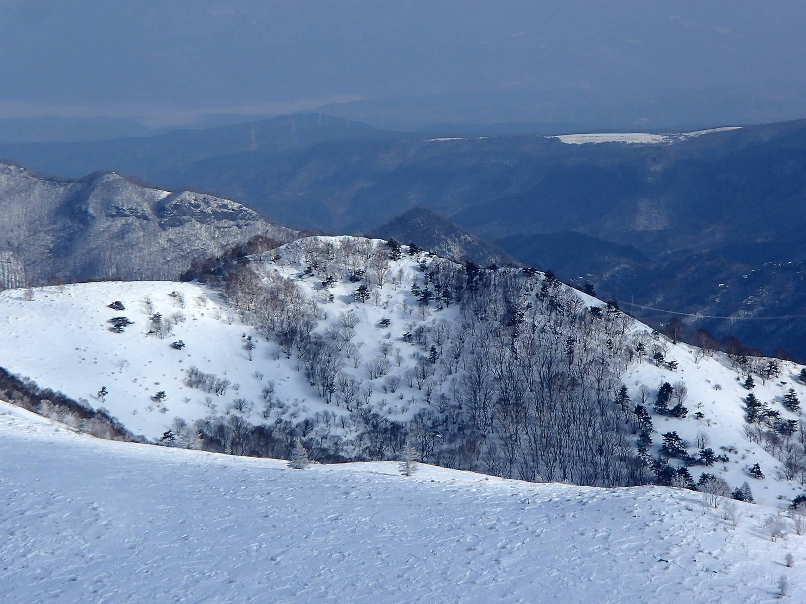 三峰山をズーム。ひときわ真っ白に見える山です。もう全山滑走には問題なさそうです。近いうちに訪れてみたいと思います。