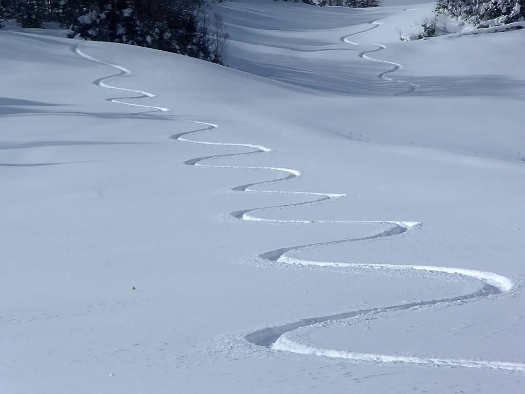 シュプールをズーム。気持ちよく滑り降りることが出来ました(^^)。
