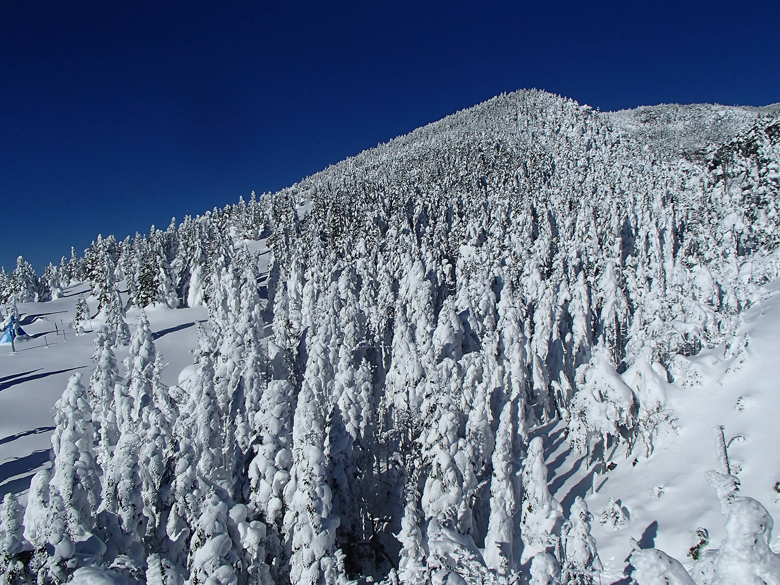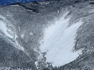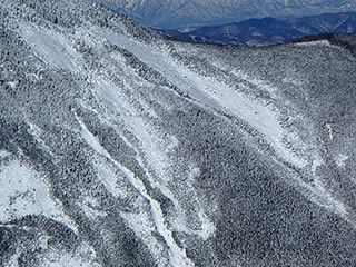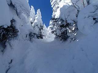 次の2枚は自分用の記録です。蓼科山東面のオープンバーン。