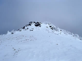 北峰をズーム。ちなみに見えているのは東面で滑った北面はその向こう側になります。