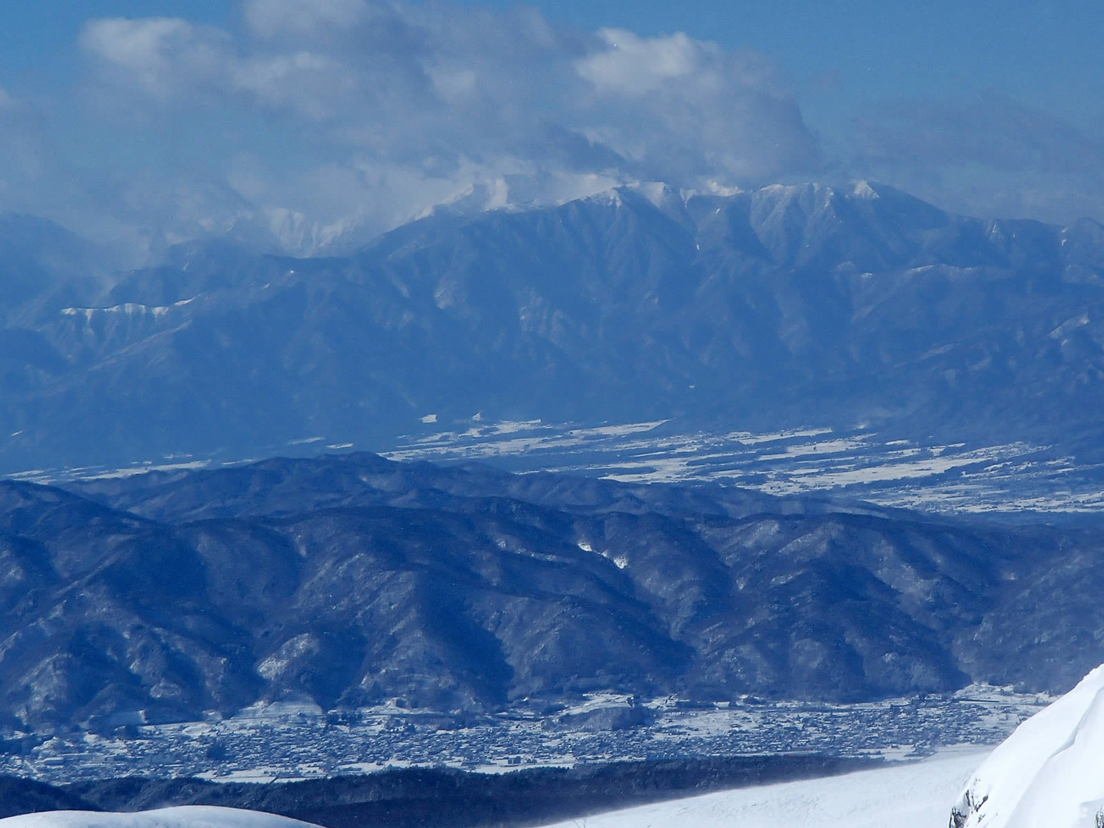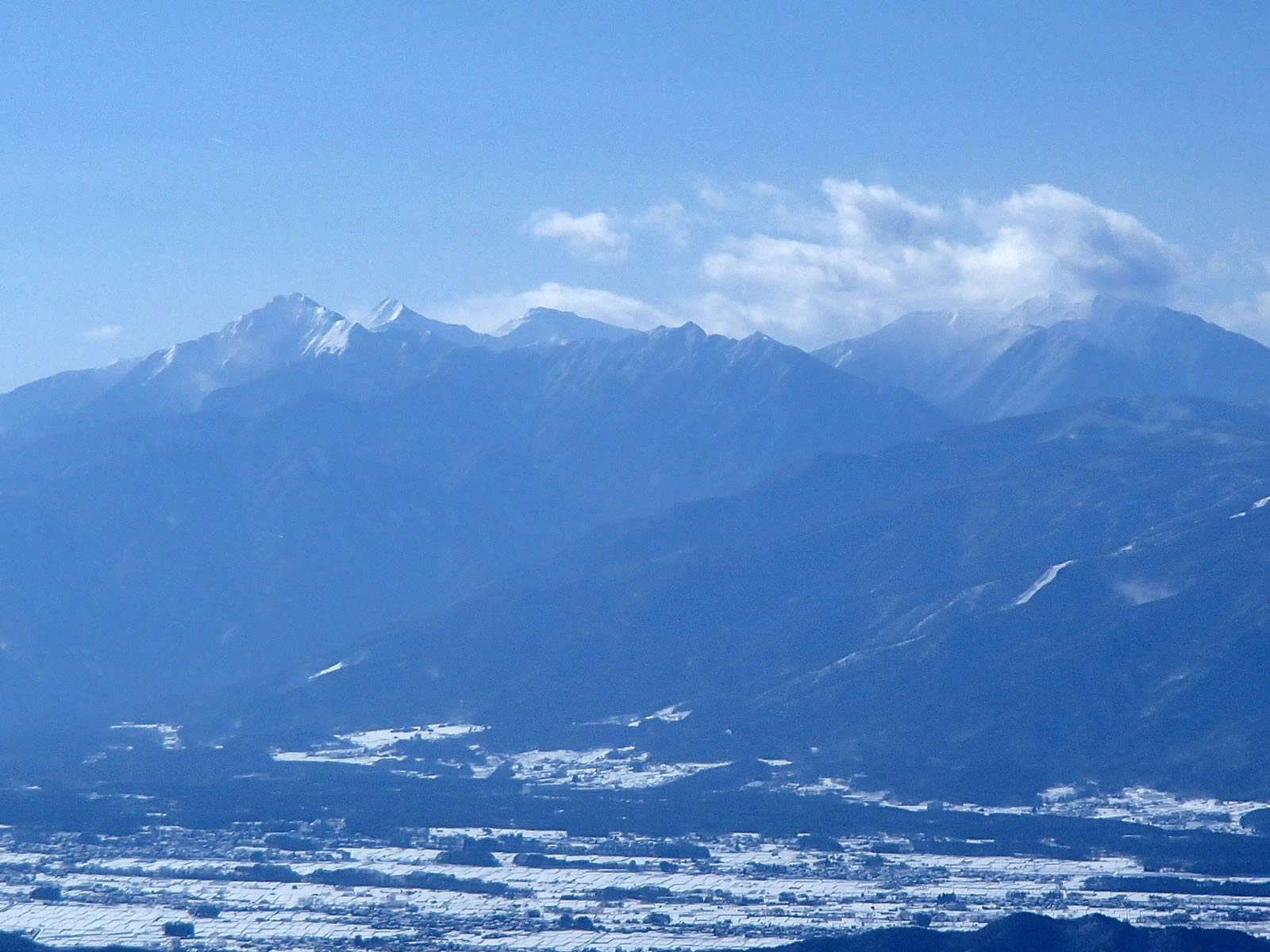 北アルプスは雪雲がかかって見えませんが、中央アルプスはまあまあ見えていました。