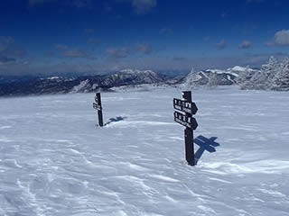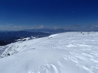 稜線も雪が多く、笹や藪はすっかり埋まっています。