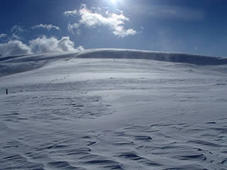 シュカブラもあまり残らないほどに新雪がほとんど吹き飛ばされてしまっています。