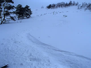 ゲレンデの隅にはまだノートラックバーンが残っていました。ただし新雪は10cmほどと浅めです。