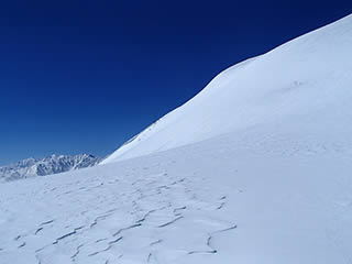 左にトラバース気味に登っていく部分は雪は柔らかかったです。場所によって風の影響がずいぶんと違います。