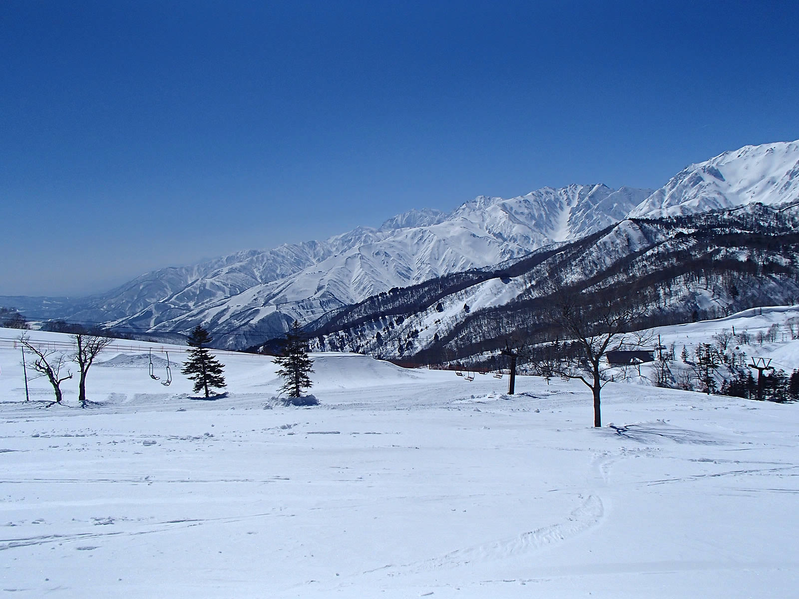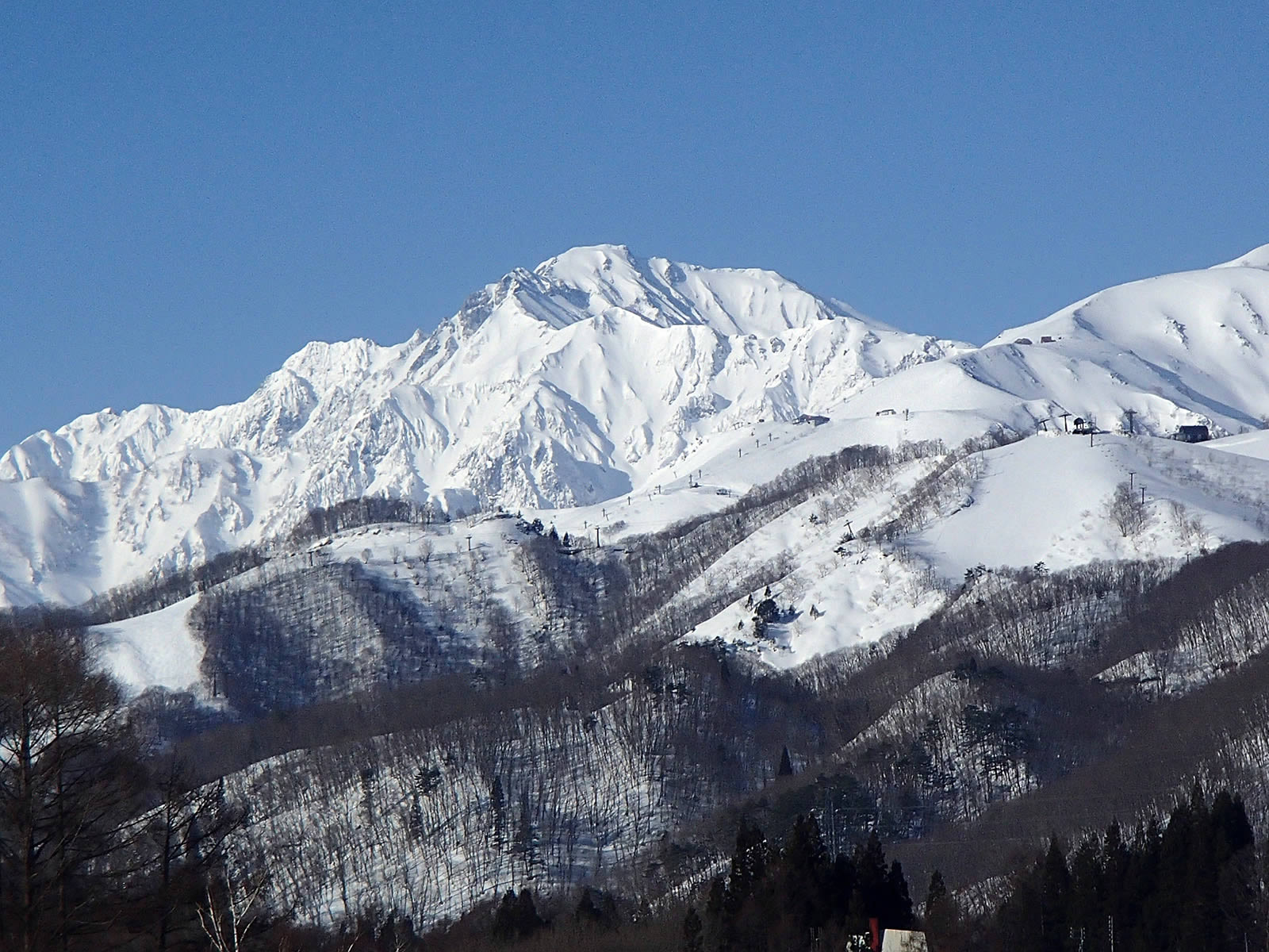 次の写真は栂池高原スキー場手前から撮影したものです。先週雨が降ったとはいえ、まだまだ雪は多いですね。
