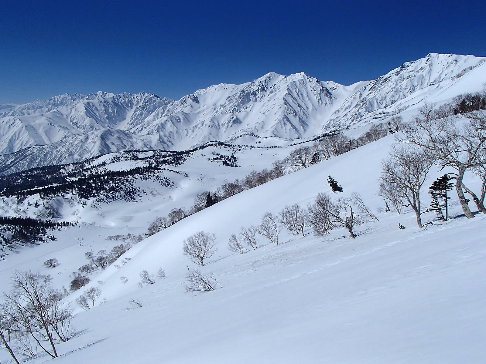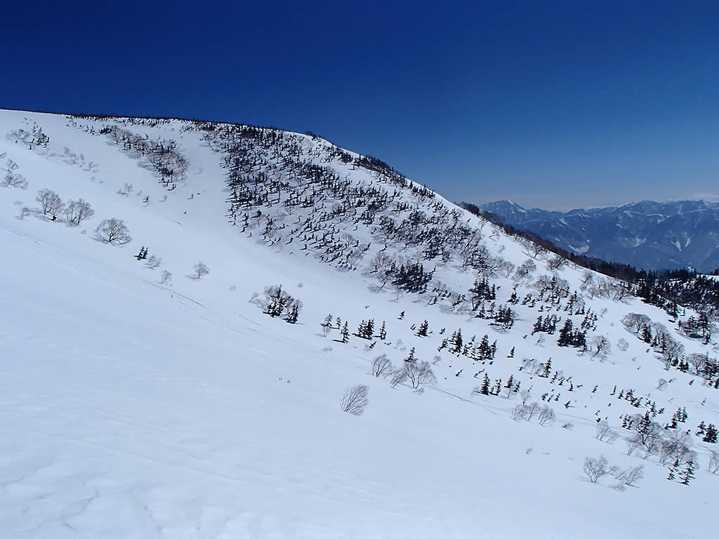 天狗原、白馬乗鞍岳東斜面をズーム。