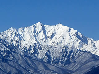 白馬岳をズーム。今年も白馬大雪渓経由で白馬岳に登って山頂から滑り降りてみたいです。