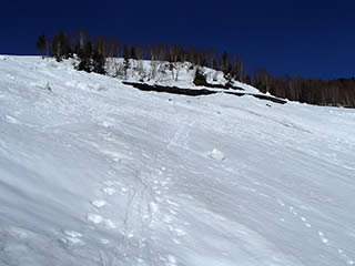 ちなみにこの斜面、過去に大きな雪崩も起きている斜面ですので、滑るときは雪の状態に十分に注意が必要です。