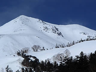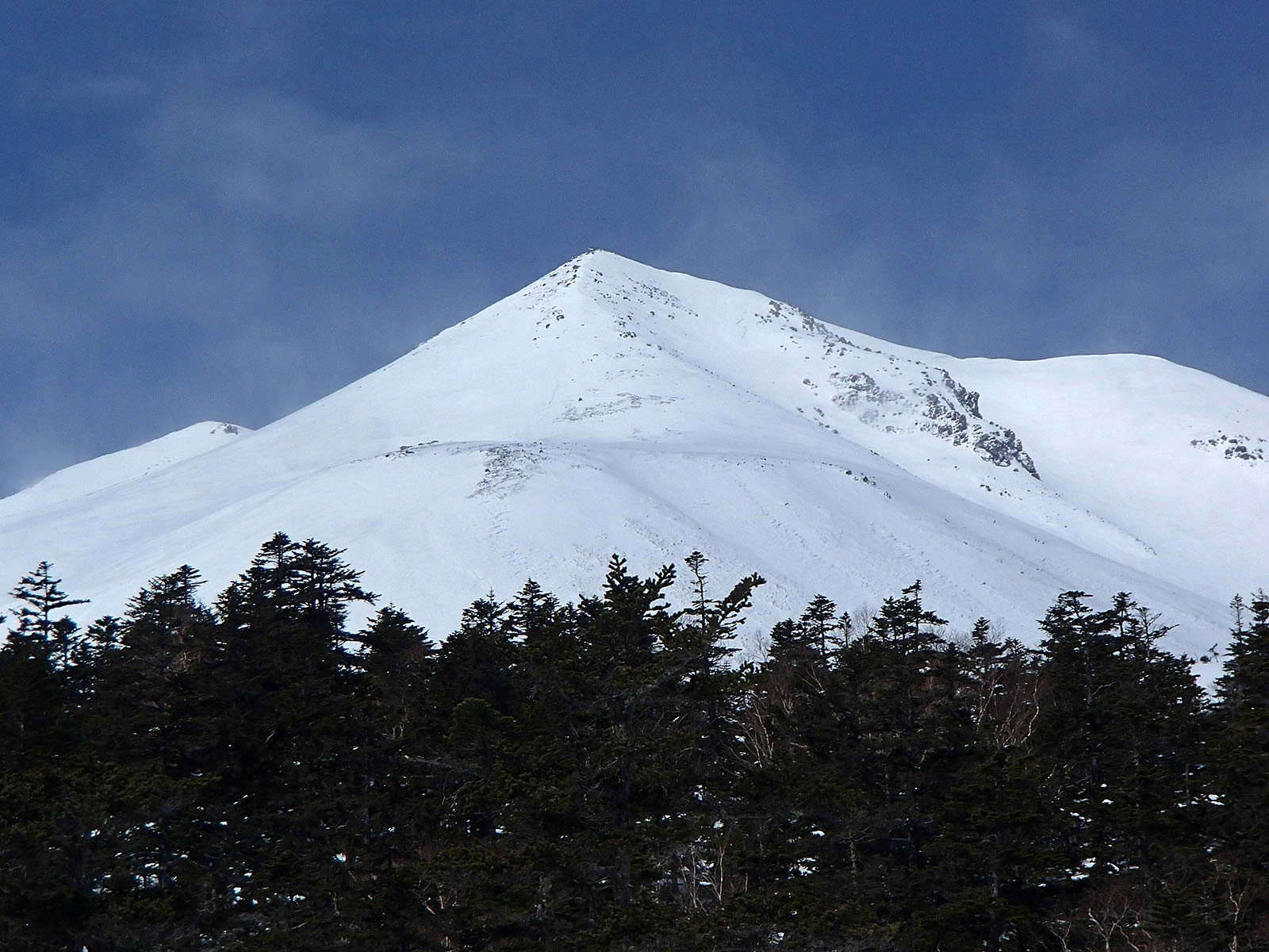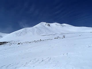 剣ヶ峰をズーム。雪の状態が良ければ今日の第一目標でした。
