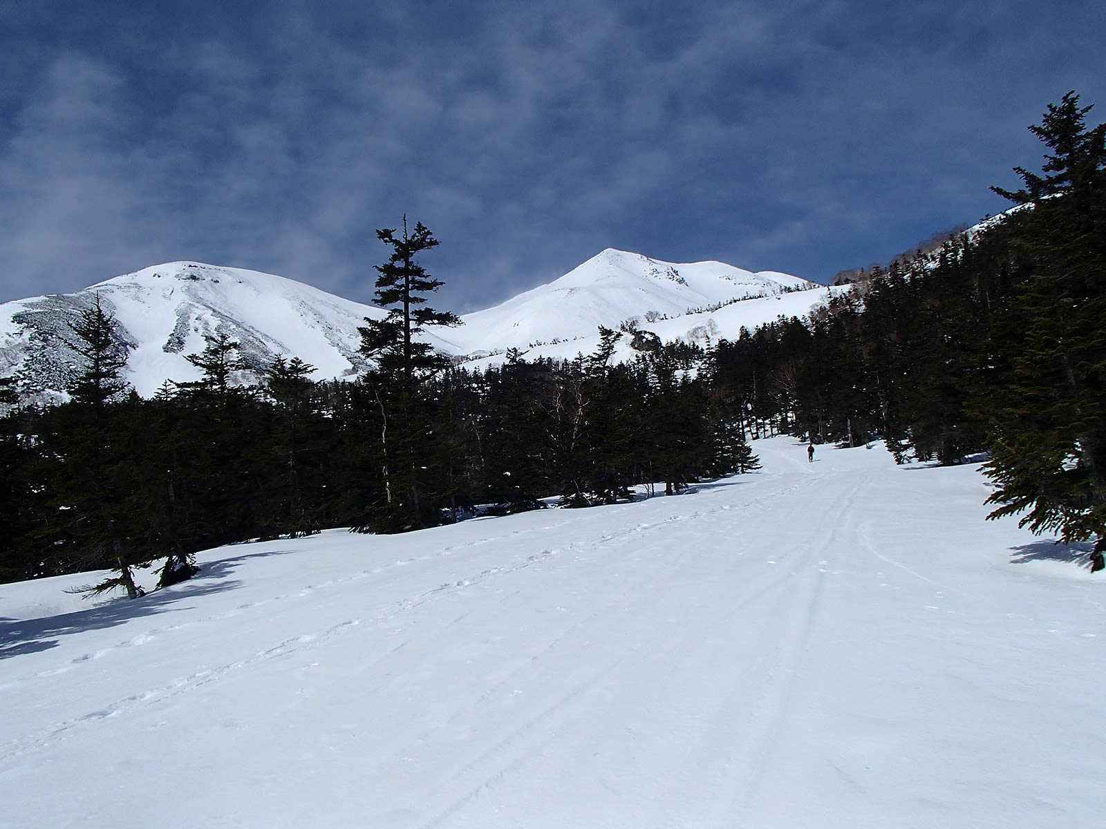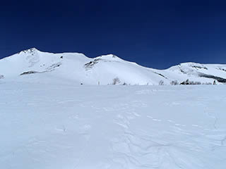 富士見岳をズーム。富士見沢は第二候補でした。ただ今回はギアトラブルによりいずれにも到達できずに終わってしまいました(^^;。