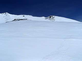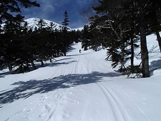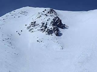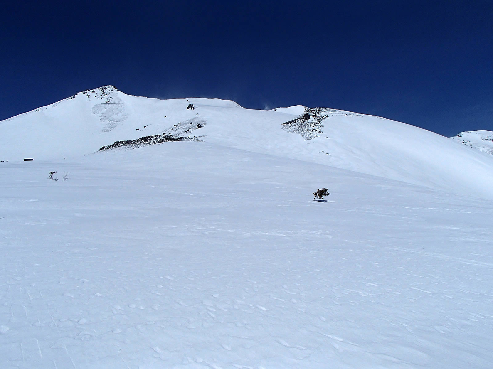 剣ヶ峰をズーム。上の方は雪の状態はどうなんだろう。結局剣ヶ峰からの滑降は5月のざらめシーズンになってからかなあ。