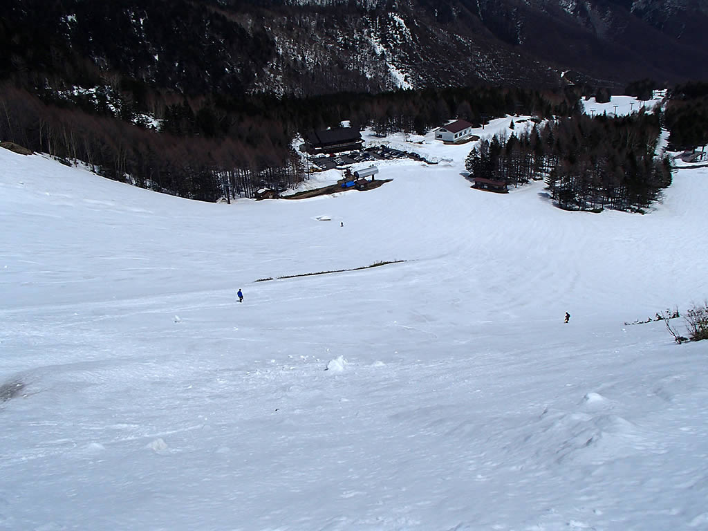 かもしかゲレンデ一番下の斜面まで戻ってきました。