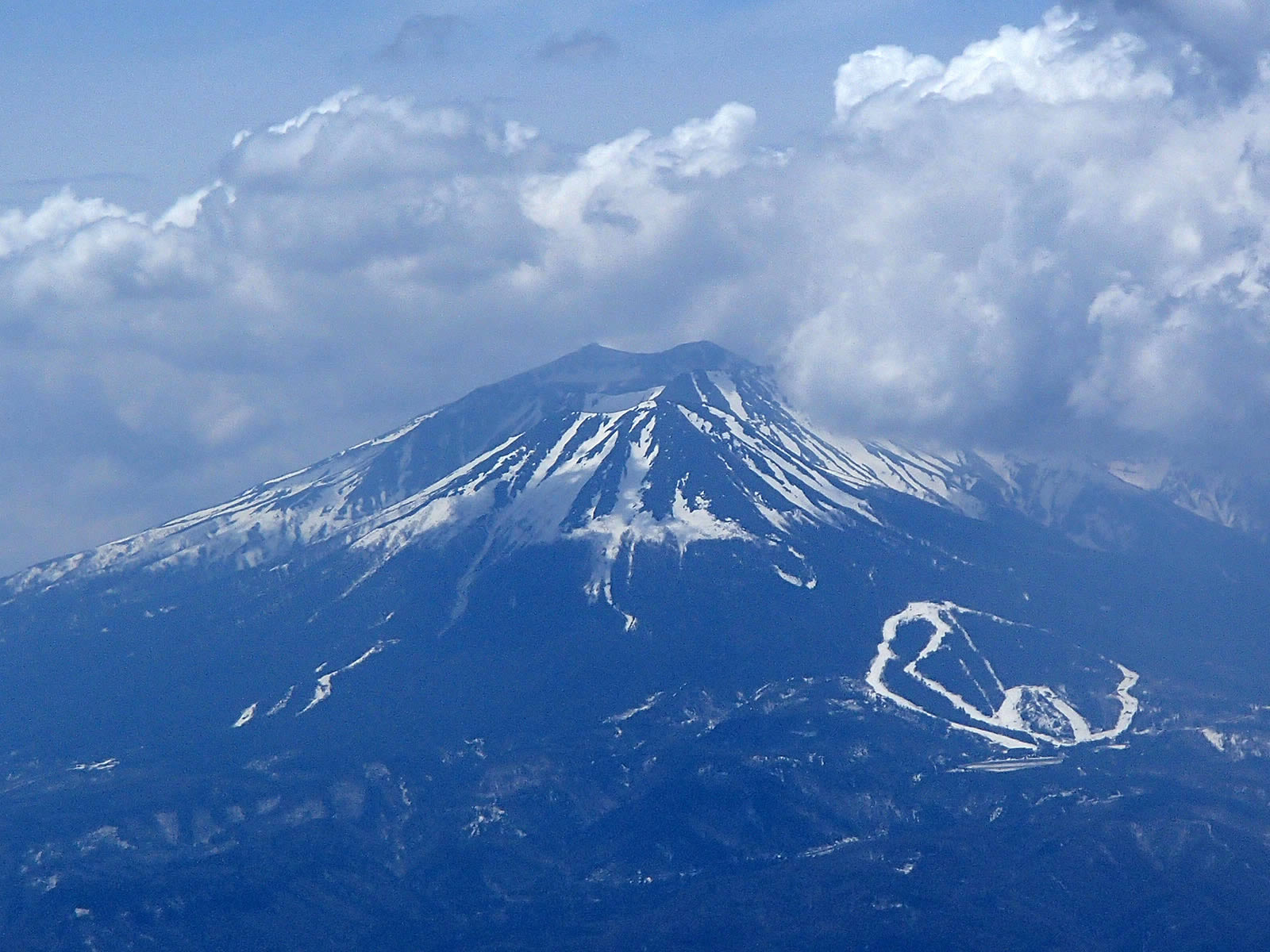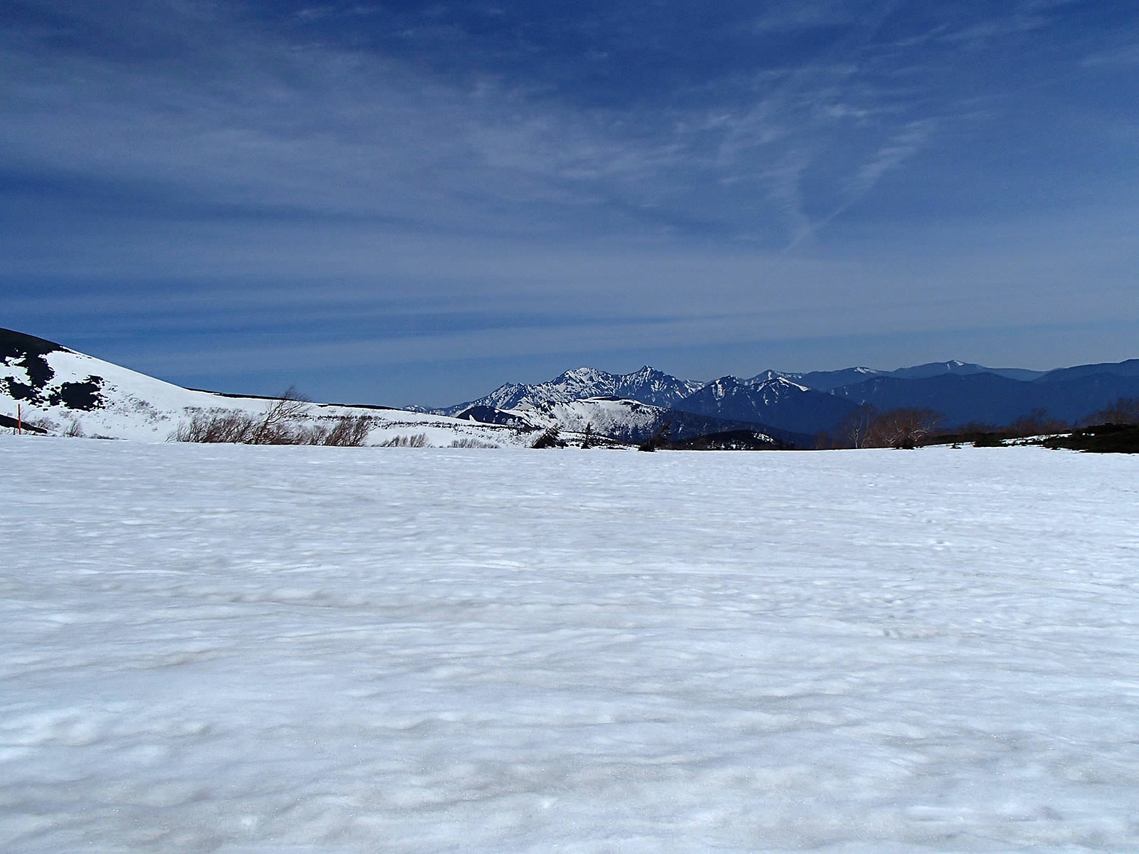 次の写真はスキー場手前から撮影したものです。少し薄雲はありますが、少なくとも午前中はすばらしい快晴でした。