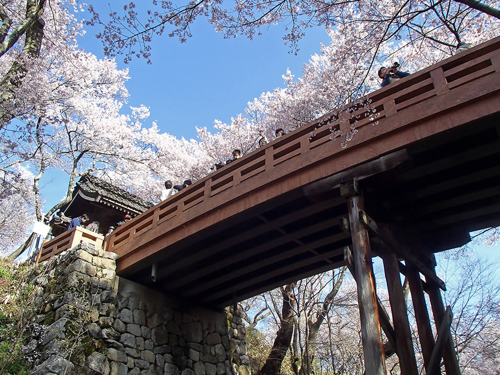 桜雲橋を下から見上げます。青空と桜が本当にきれいです。
