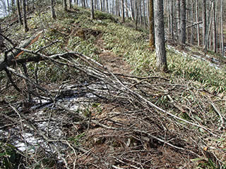 何カ所か登山道上に倒木がありましたが、その脇を問題無く通過できました。
