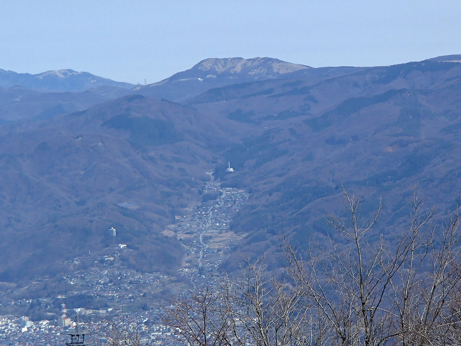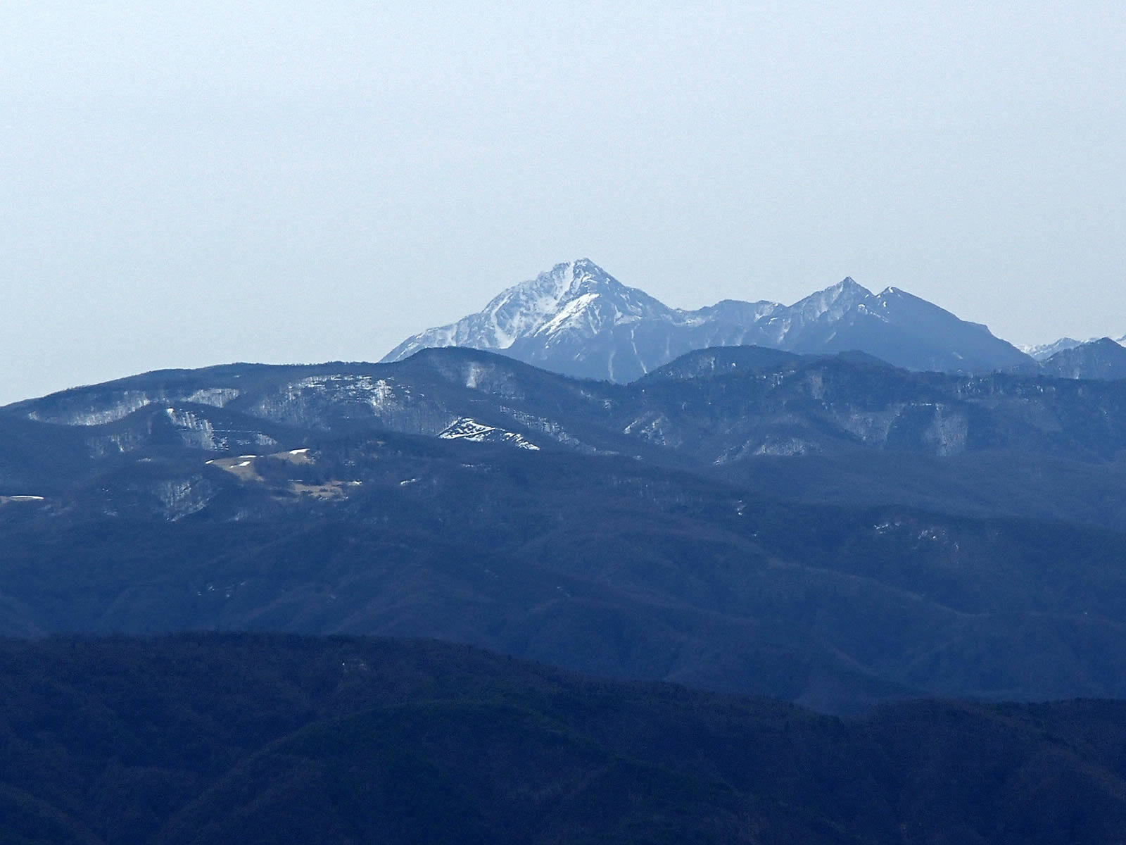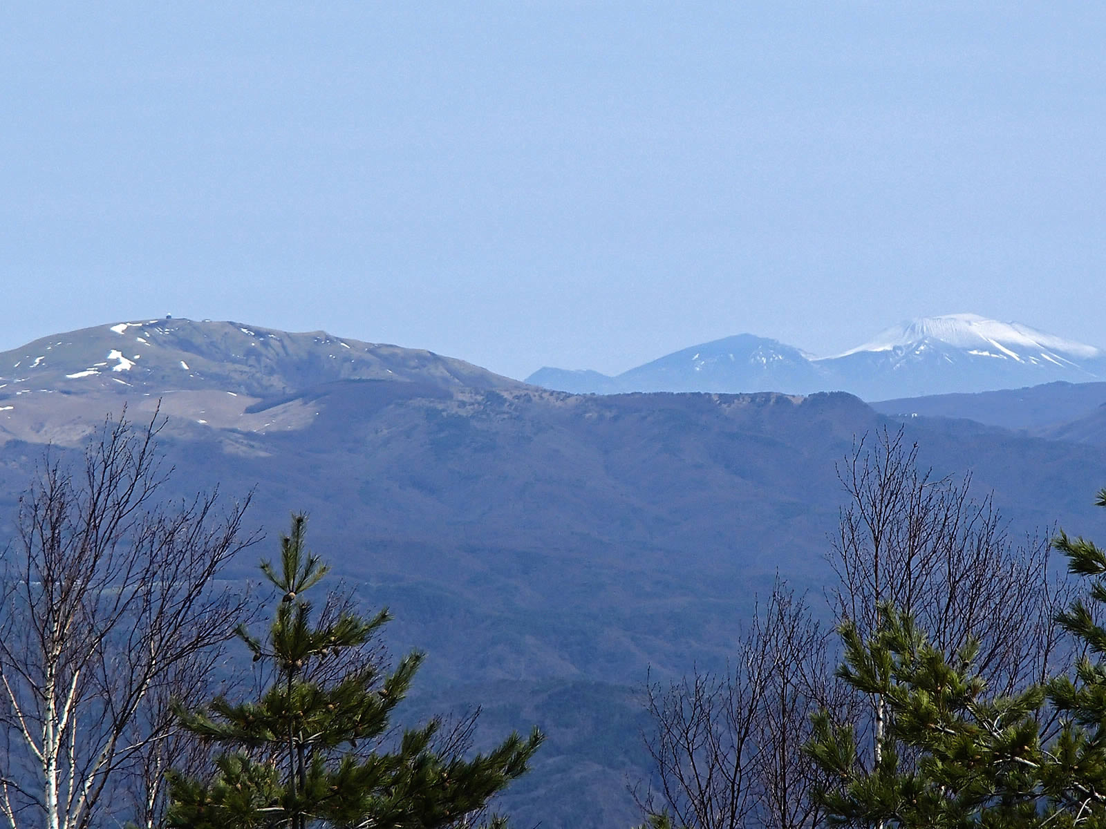 浅間山、車山をズーム。車山も南側斜面はいつの間にかほとんど雪が無くなってしまいました。
