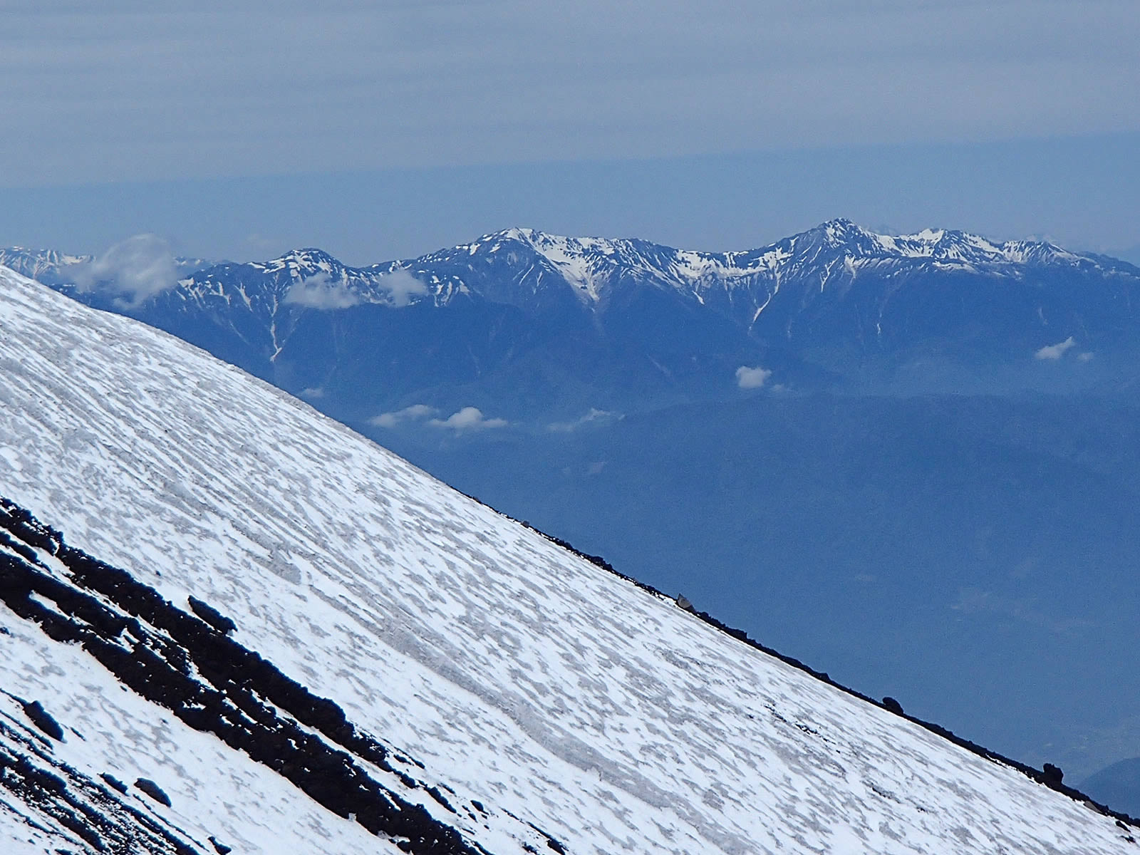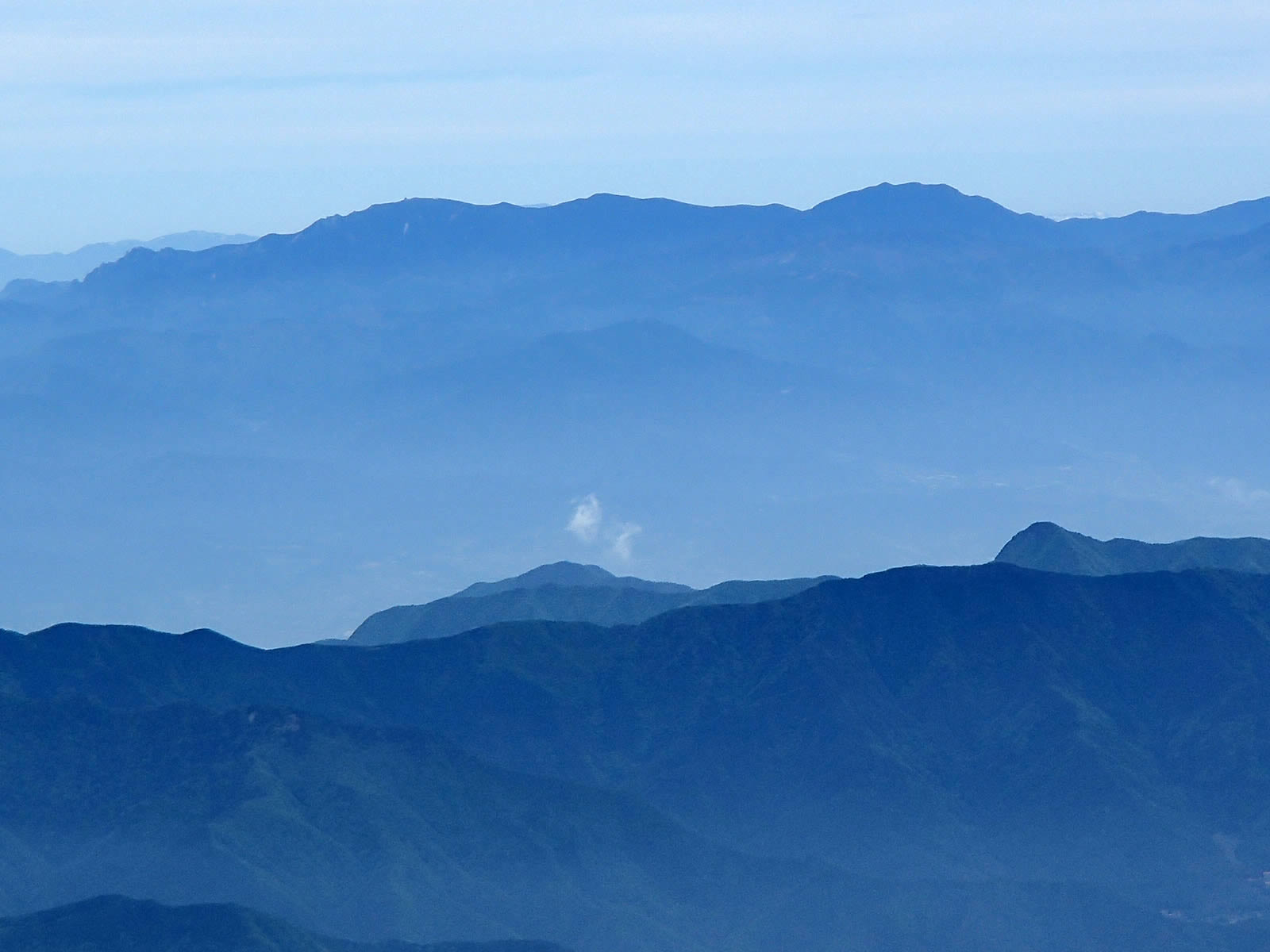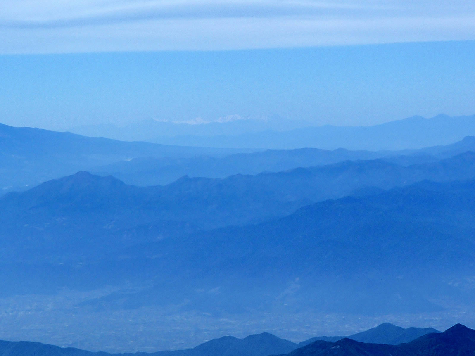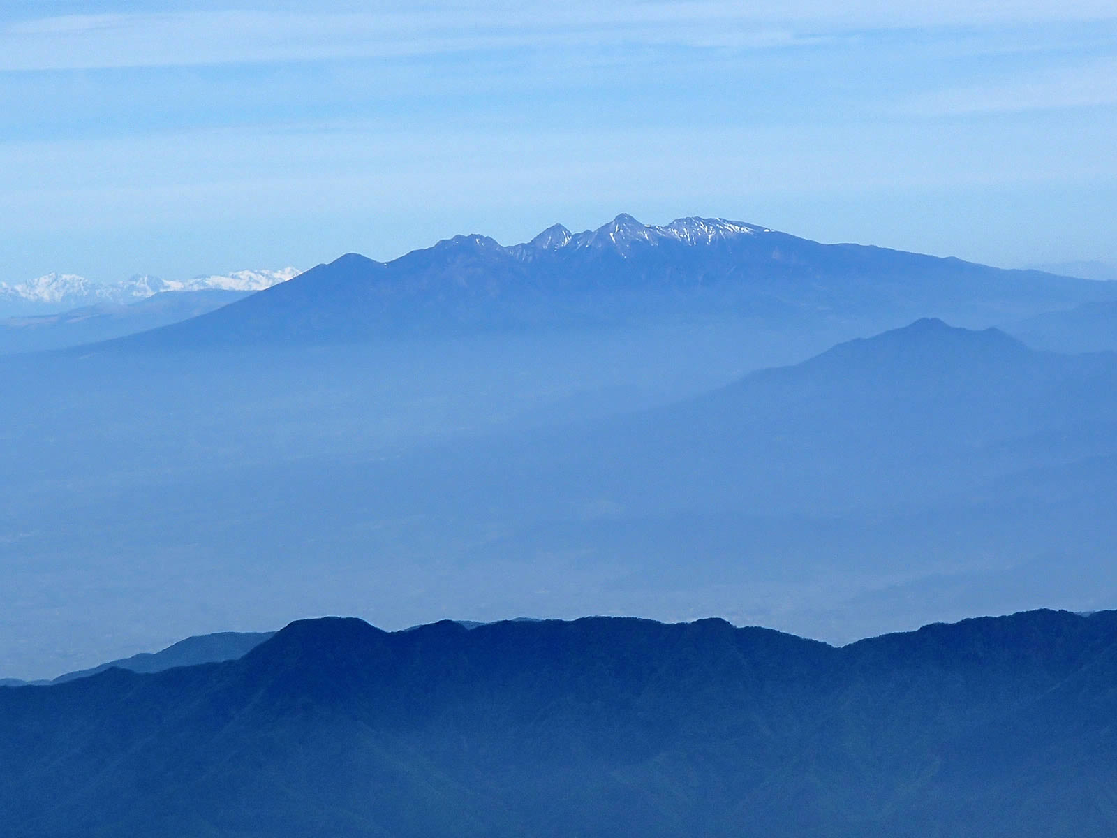 三ツ峠山とその向こうの大菩薩嶺をズーム。大菩薩嶺は近いうちに是非一度登ってみたい山です。