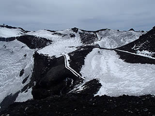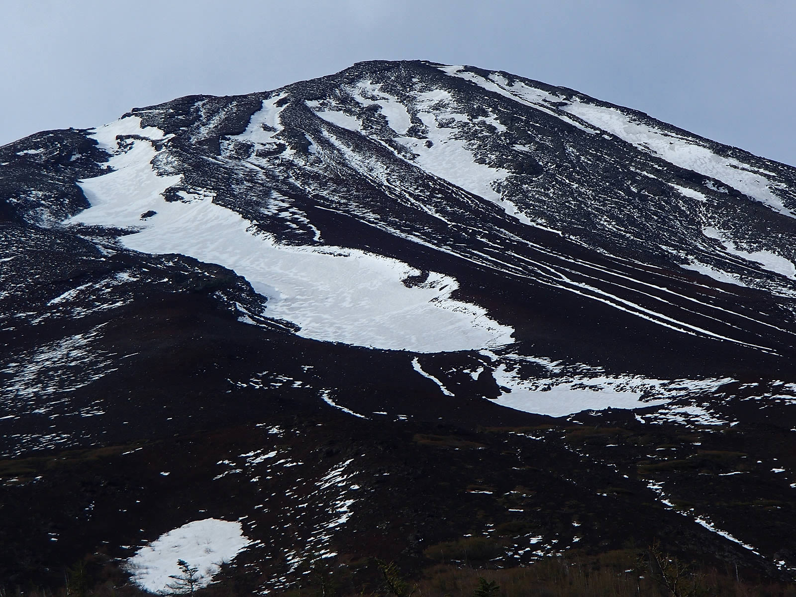 須走側斜面も上部はまだ雪は多いです。