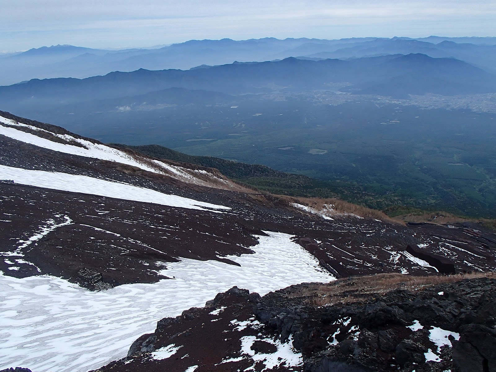 六合目から吉田大沢を振り返ります。もう少し天気の回復が早かったらなあ。