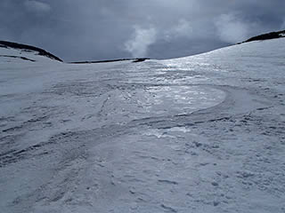 白雲荘に向けての斜面も雪がほとんど無くなりました。そうそう、この頃からやっと青空が戻ってきました。