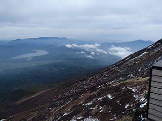 7時39分、吉田口登山道に合流。青空も日差しもありませんが、午後には回復するという予報に期待します。