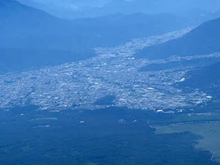 富士吉田の市街地をズーム。