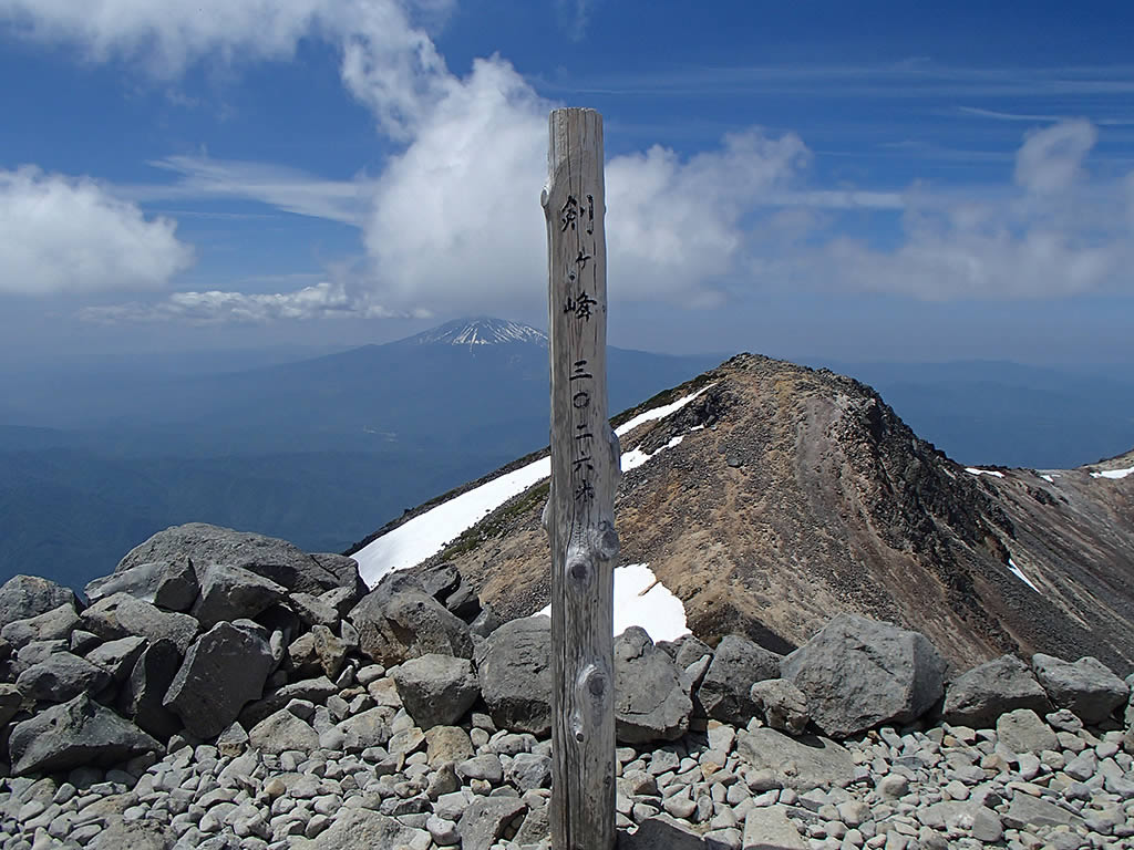10時3分、剣ヶ峰山頂に到着。たった1時間半の登りで3000mを超える稜線に立てるなんて、なんてお手軽なんでしょう(^^)。