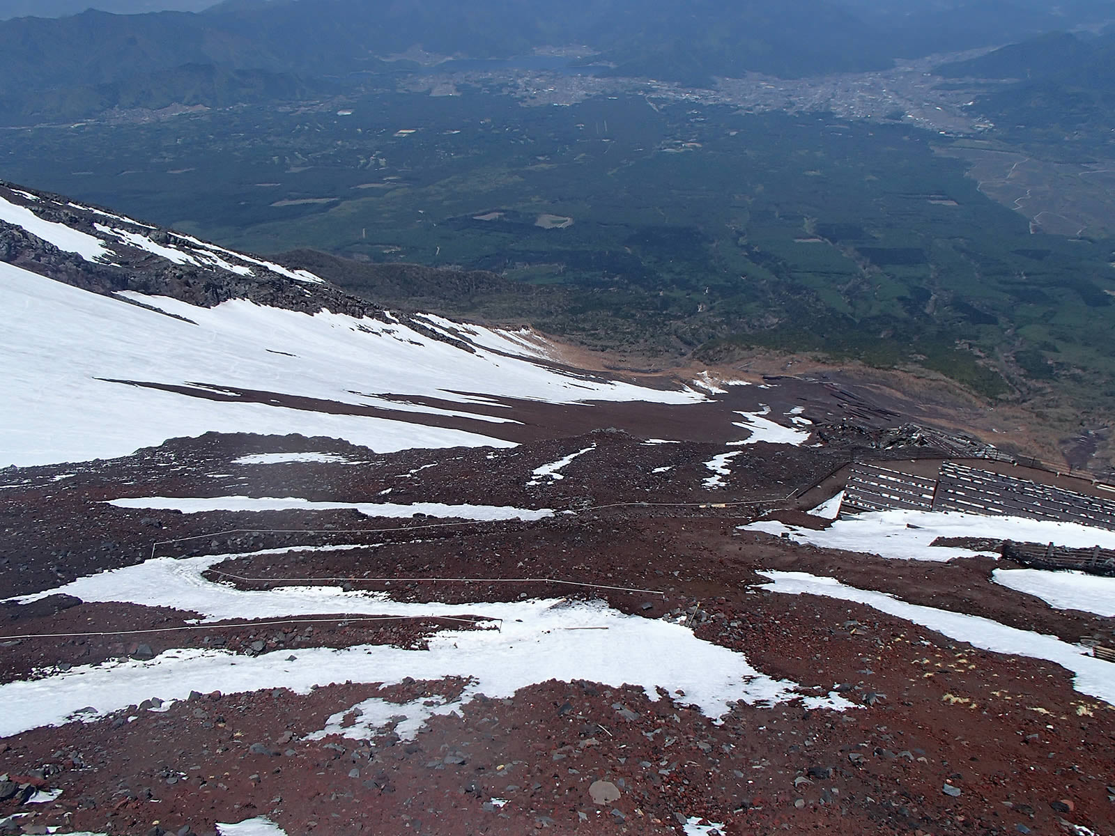 次の2枚は途中で撮影した富士山の様子です。雪が少なく、本当に6月中旬頃の富士山です。