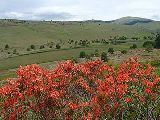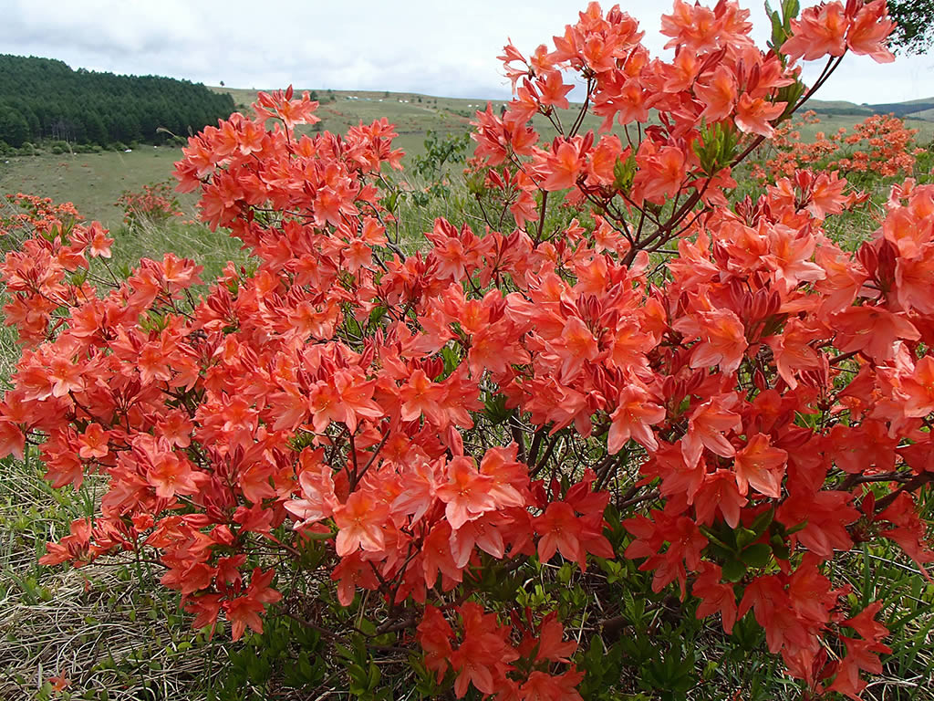 霧ヶ峰インターチェンジ近くのレンゲツツジの様子。