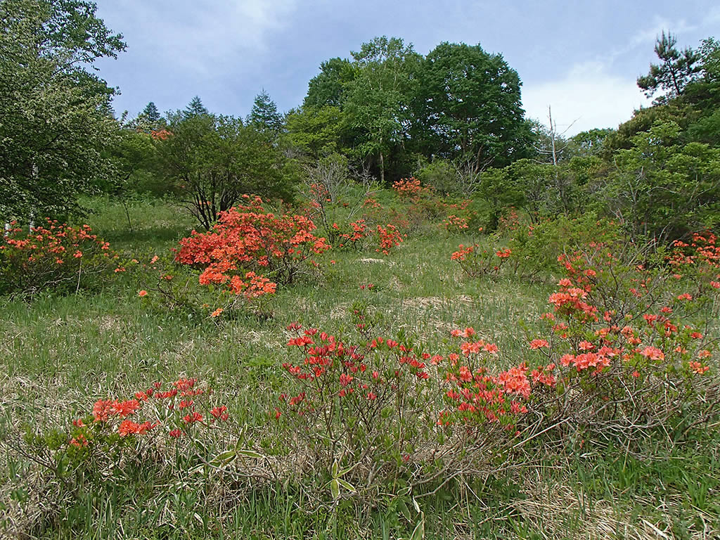 つつじですが、八島湿原周辺のレンゲツツジは平均すれば6分咲きほど、鷲ヶ峰の稜線の山つつじはまだ2分咲きという感じでした。それでも例年より1週間から10日は早い感じです。なお踊場湿原のレンゲツツジはちょうどピークという感じで見事でした。