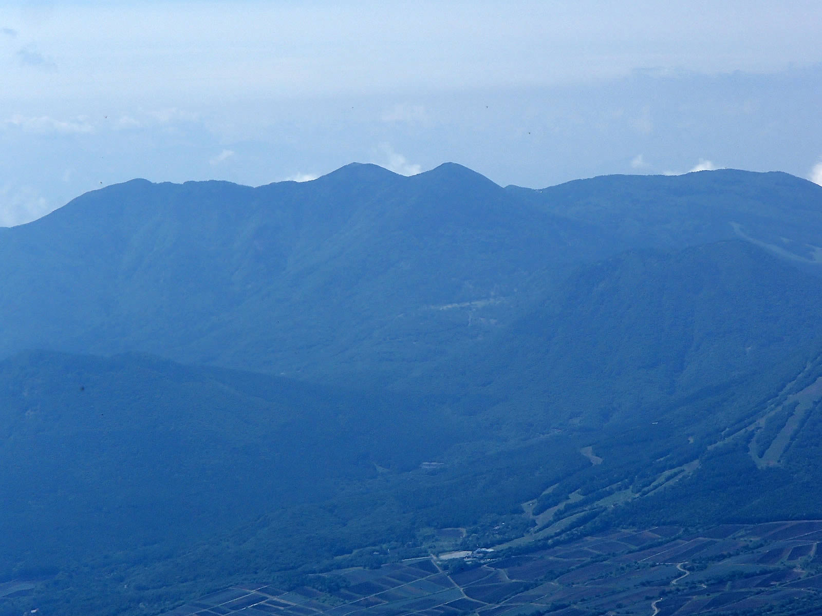 湯の丸山、烏帽子岳をズーム。湯の丸山のレンゲツツジも久しぶりに是非見に行きたいところです。