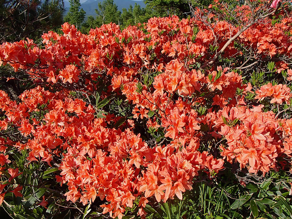 森の中はこの少し薄めのオレンジのレンゲツツジが多かったですが、これはこれできれいです。