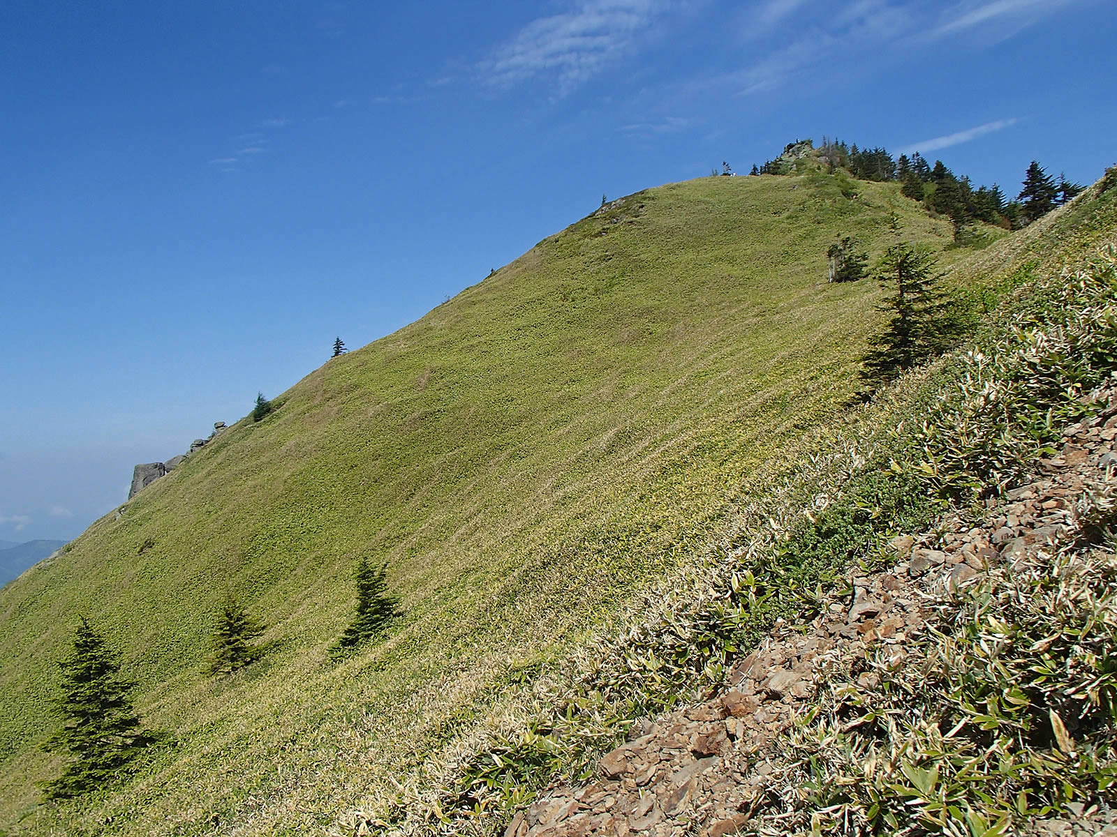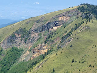 四阿山の斜面。四阿山はなだらかなイメージがありますが、こんな急な崖のような部分もあるんですね。