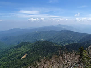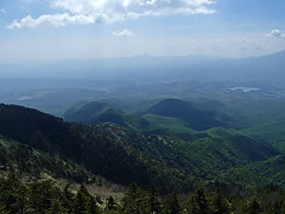 烏帽子岳の向こうに八ヶ岳がうっすらと見えていました。そして蓼科山の両脇にはおそらく南アルプスの山もうっすらと見えています。