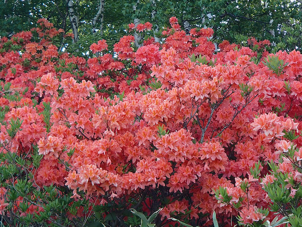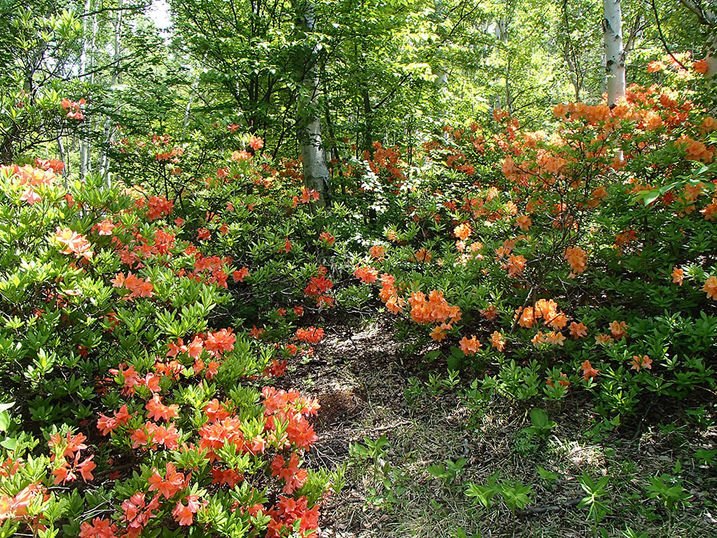 白樺の林の中も一面にレンゲツツジが咲いています。